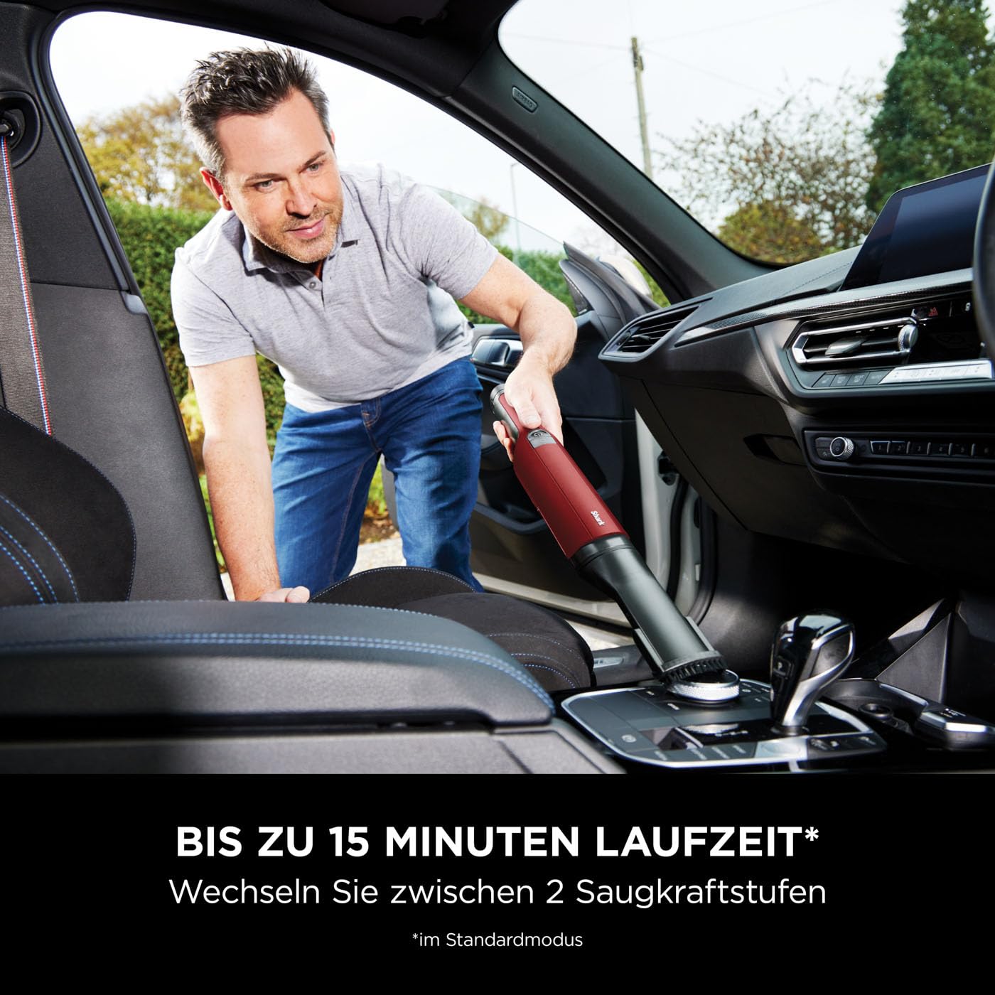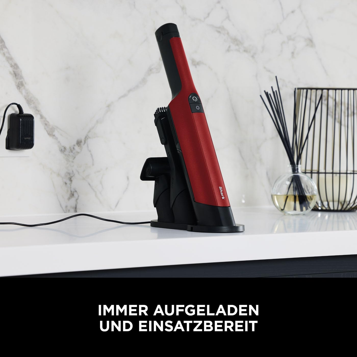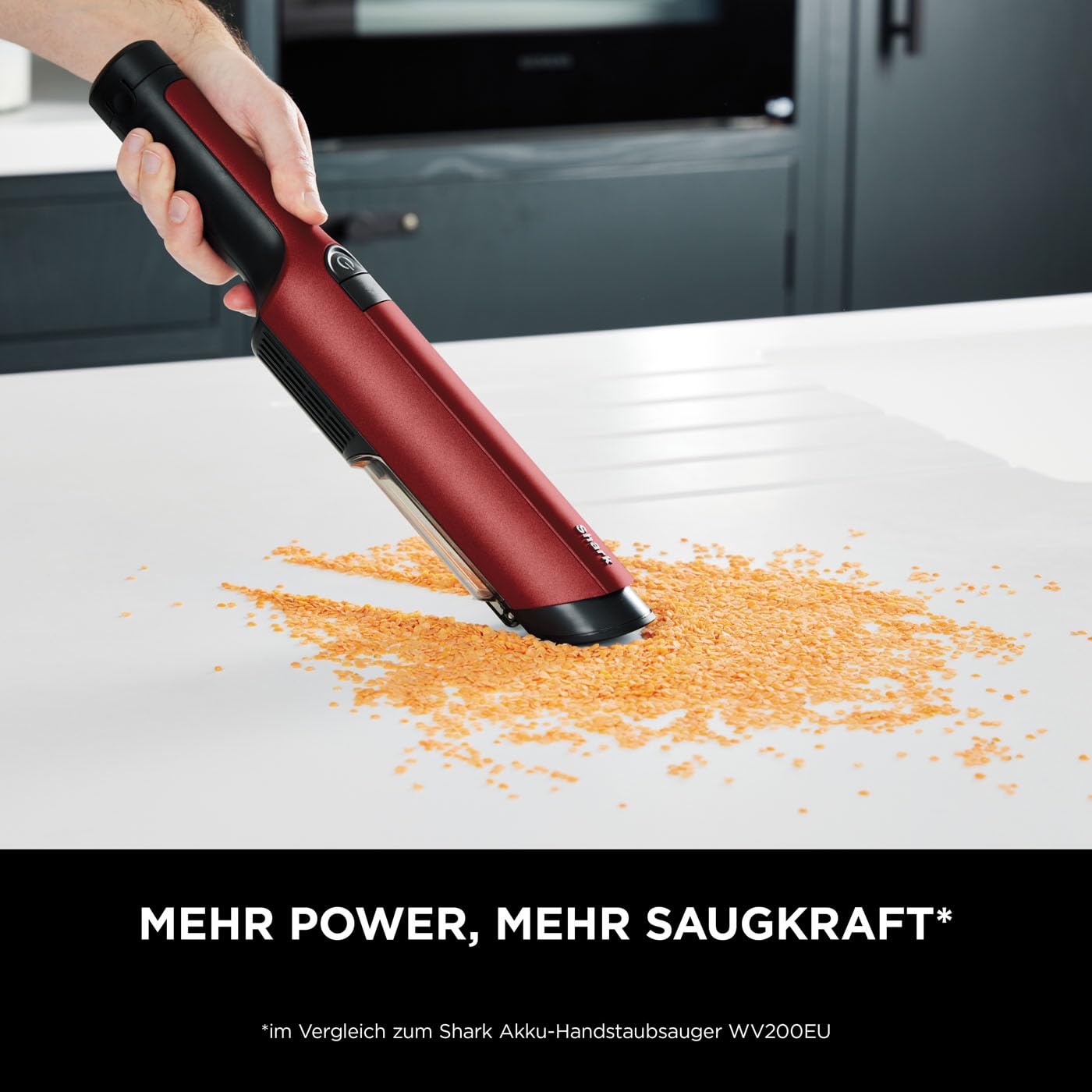 ["MORE POWER, MORE SUCTION*: Slim, lightweight cordless handheld vacuum quickly removes dust, dirt, and pet hair from your home. Perfect for quick clean-ups. (*vs. Shark WandVac WV200EU)", "INCLUDES 2 ATTACHMENTS: Crevice tool & Multi-Surface pet hair attachment. Clean everywhere, from kitchen countertops to sofas and in the car, perfect for lively households with kids or pet hair", "UP TO 15 MINUTES RUN TIME*: Customize your cleaning with 2 power modes, including Boost for extra suction power whenever you need it. (*In standard mode)", "AN EYE-CATCHING DESIGN: Exclusive black design. Charges while stored on the sleek charging dock. Keep it handy on the countertop. Easy emptying and washable filter", "INCLUDES: Shark WandVac 2.0 cordless vacuum, charging dock (US plug), crevice tool & Multi-Surface pet hair attachment, washable filter, Weight: 660 g. Capacity: 0.1l, Paprika"]