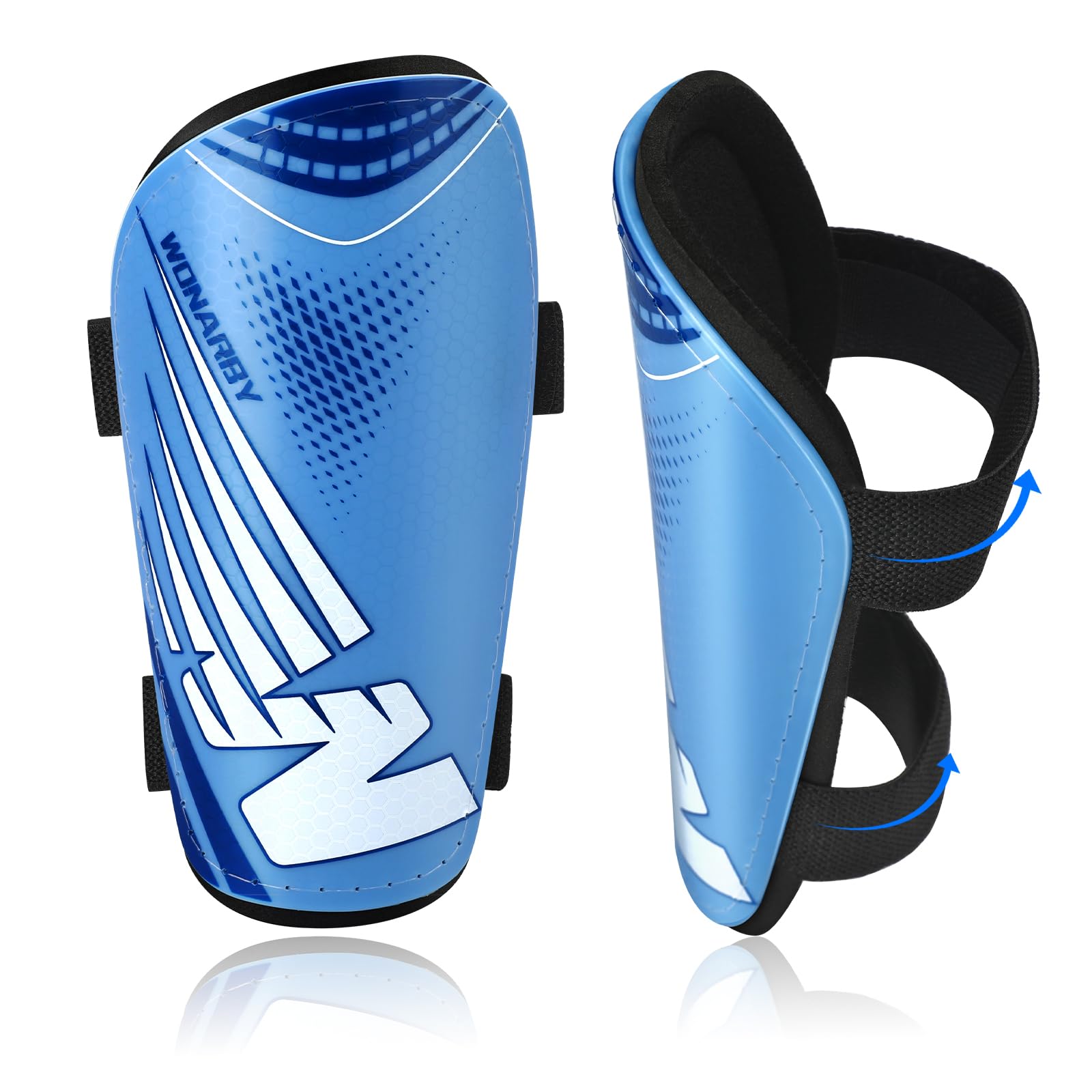 ["High-Performance Design: The shin guards for children's soccer are made of high-strength PP Shell and 5mm thick high-elastic EVA cushion. They can effectively improve shock absorption and impact resistance and provide comprehensive protection from shin to calf. The shin guard is professional protective equipment, specially designed for children and adolescents.","Adjustable elastic straps: The children's shin guards feature adjustable elastic Velcro straps that provide a secure fit and prevent slipping. The straps allow for easy adjustment of the soccer shin guards to the child's leg length to better suit the child's training condition.","Ergonomic Design: The shin guards for men and women are ergonomically streamlined, precisely conforming to the curvature of the front shin and fitting the leg. The soccer shin guards are more stable for long-term wear, are nice and safe for children's soccer to practice and play soccer.","Choice of Size: For different age groups, we offer four sizes of shin pads that can be selected according to the actual height of the children: XS (100-120cm), S (120-140cm), M (140-160cm) and L (160-180cm). Please use the size chart to select the appropriate children's soccer shin guard size.","Perfect for Sports: Shin guards are suitable for toddlers, children, and adolescents, boys and girls. Soccer shin guards are great for sports where the legs are prone to impacts, such as soccer, softball, baseball, hiking, cycling, hockey, children's soccer, fitness training, etc."]