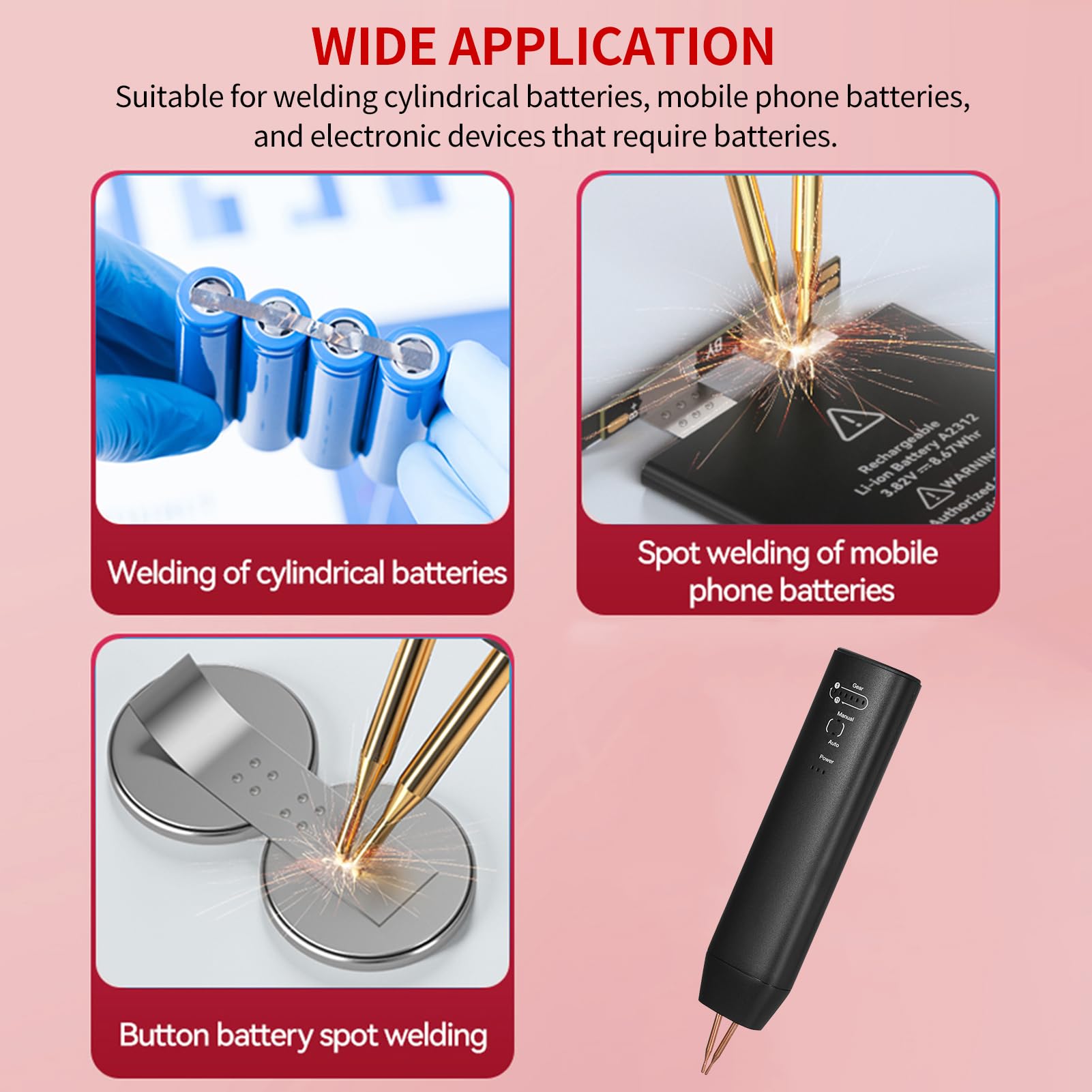 Easy operation: The battery-powered spot welding machine is easy to use, requiring only contact between the welding head and the object and then a simple button press. Since no complex setup or debugging is required, it is perfect for beginners and DIY enthusiasts.