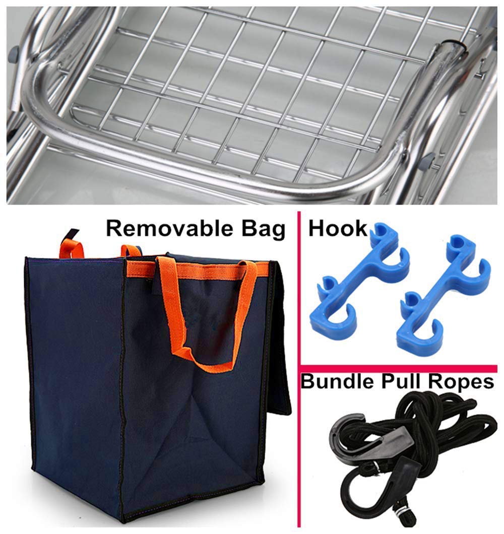 "【HIGH QUALITY】 - The stainless steel aluminum frame construction enhances strength and durability. It can be used for years without bending and can hold up to 60 kg of cargo. It comes with a removable waterproof bag for use on rainy days."]