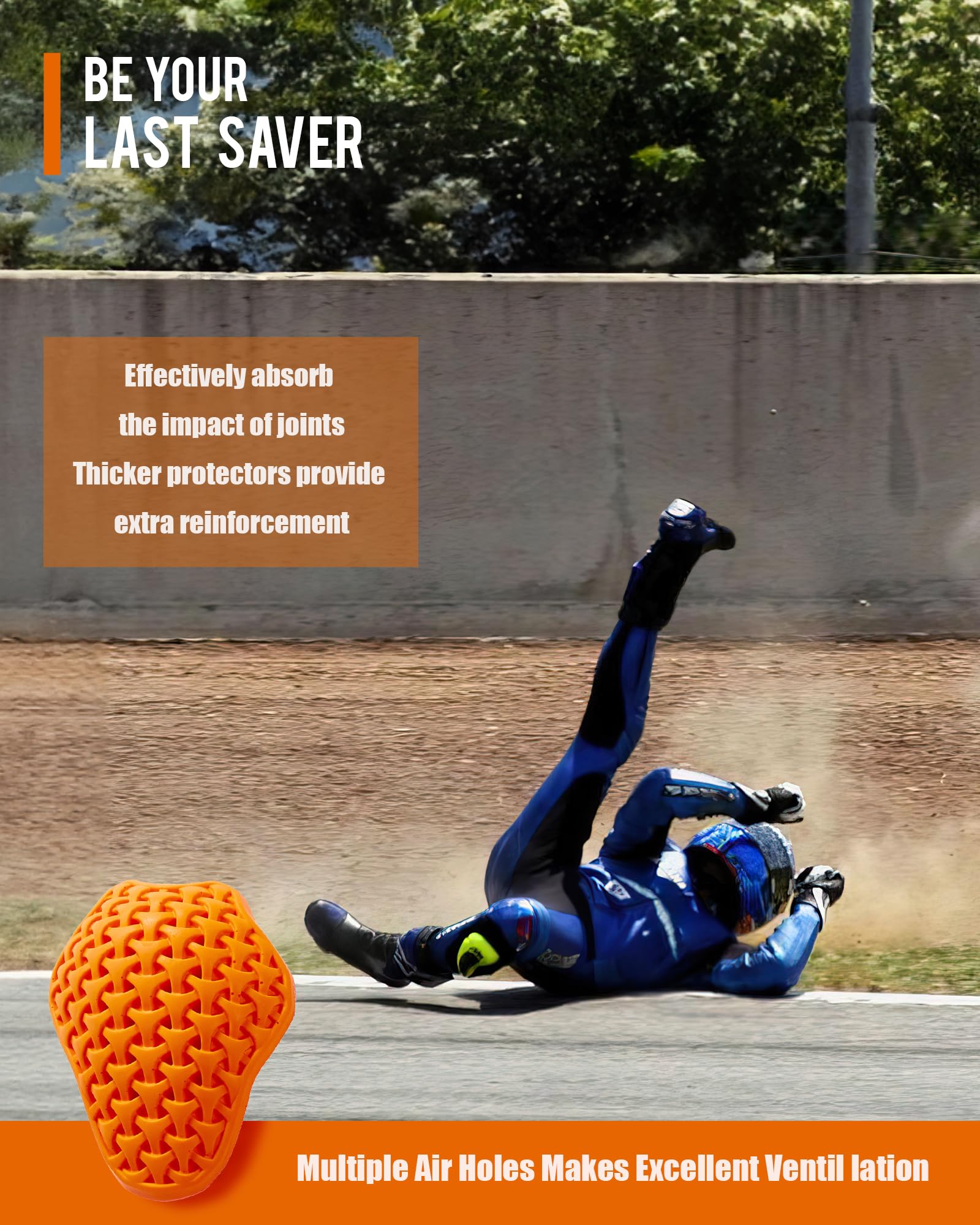 ["【CE certified】: Effective protection is especially important on motorcycle tours. Our back protector is tested according to EN 1621-2 protection class 1, and elbow and shoulder protectors are tested according to EN 1621-1 protection class 2, ensuring maximum safety.","【Material】: Slow rebound, perforated PU memory foam, high softness, can be bent at will, strong elasticity.","【Safety】: Provides excellent impact resistance to ensure your driving safety. Absorbs higher impacts, allows free movement, and becomes hard during heavy impacts, dissipating most of the impact energy. After impact, the material becomes soft and flexible again.","【Excellent ventilation】: The protection features ventilation holes, allowing you to ride comfortably even on hot days without feeling stuffy.","【Ideal for low-temperature environments】: This protection can maintain its original impact resistance even in a -10°C environment."]