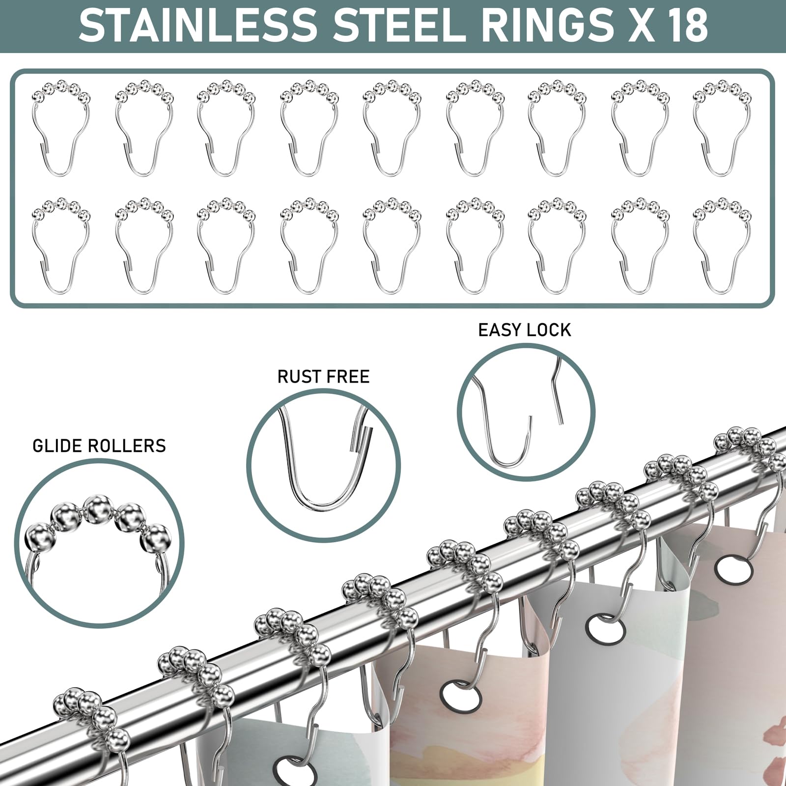 "The guide rail for shower curtains can hold curtains weighing up to 10 kg. This shower rod can be installed and removed repeatedly. This shower rod comes with 18 shower curtain rings, no additional purchase is required.",