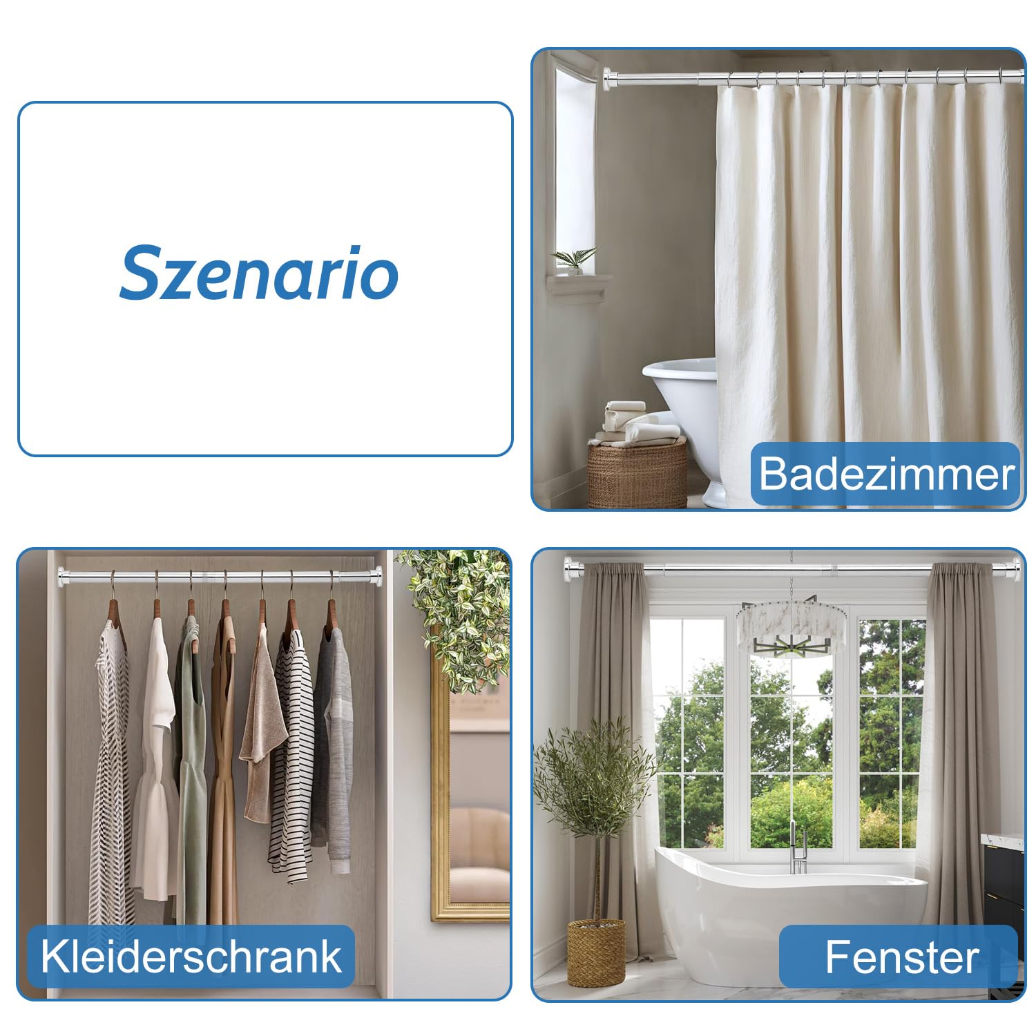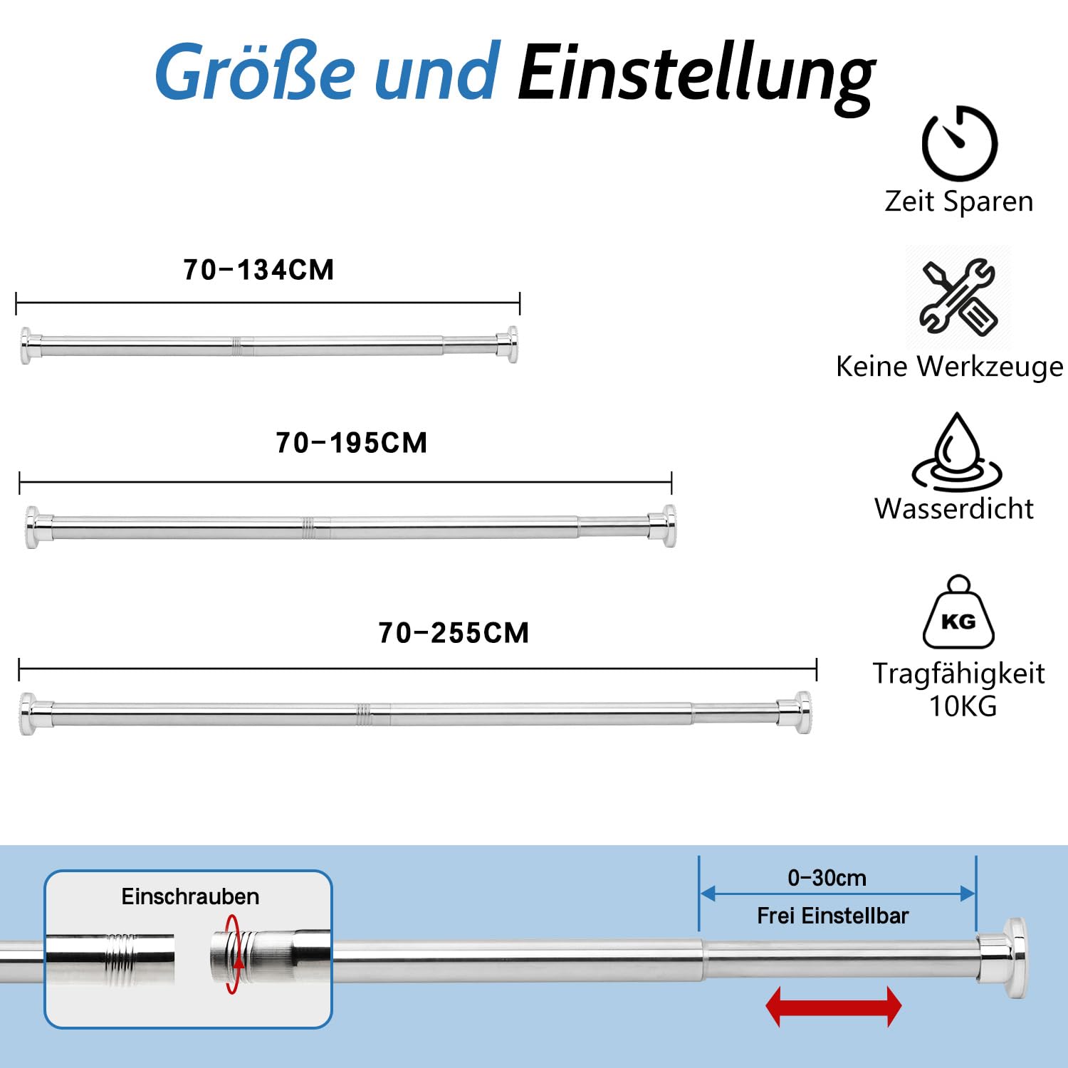 ["High-quality Materials】This shower curtain rod is made of high-quality stainless steel. Sturdy, durable, non-slip, and easy to clean. Corrosion-resistant and resistant to rust caused by steam in the bathroom.",