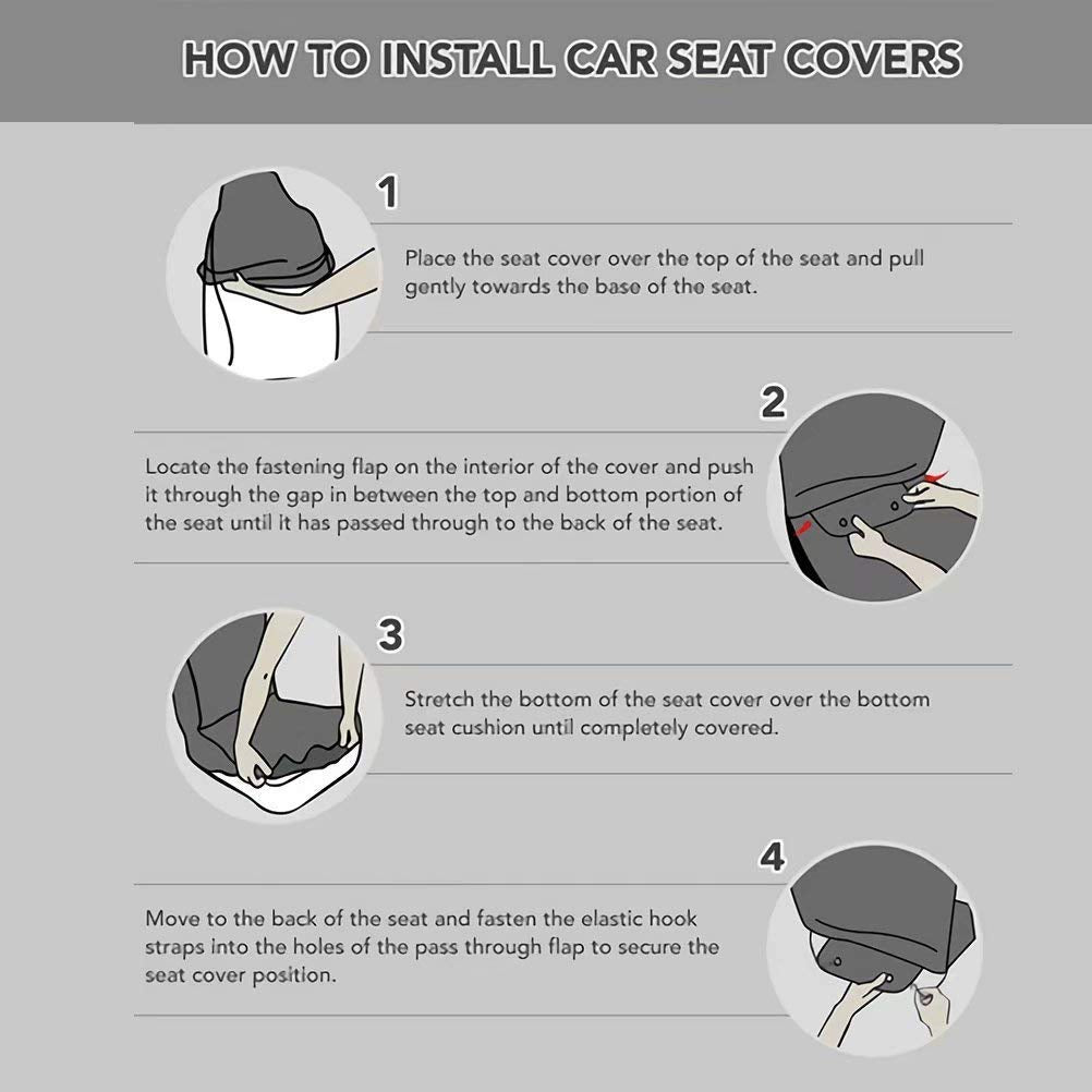 Easy to install and clean: Elastic band with hooks at the bottom of the seat covers, installation can be easily done anywhere by following the instructions.