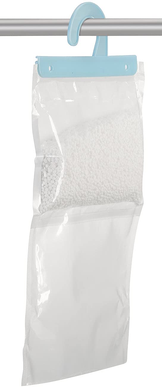 "Protect wardrobes, closets, and more from moisture • Prevent mold and odors • Each absorbs up to 1 liter of moisture • Simply hang on clothes rack, hanger, or hook"