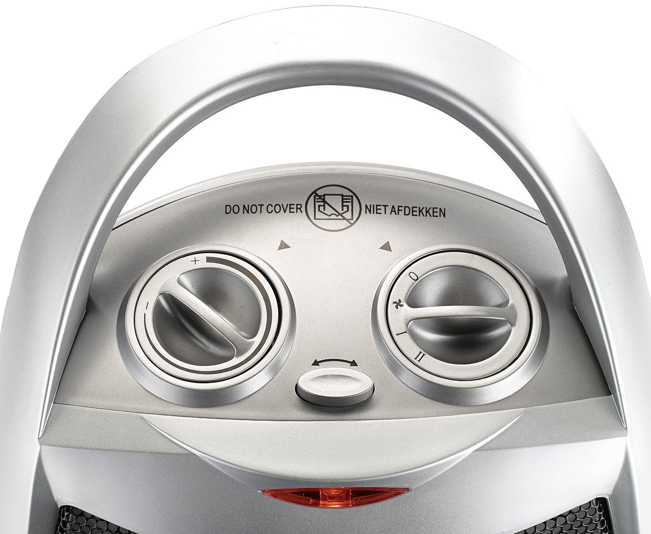 ["Ceramic heating element • Quiet, 3-level operation • Stepless thermostat • Strong 1,500W • Tilt protection switch • Swivel function","Compact ceramic fan heater LV-230: ideal for quick heating and rooms without their own heating, e.g. motorhome, party cellar, bathroom & Co. • Continuously adjustable thermostat: keeps room temperature constant • Status LED • Color: silver-gray","Ceramic heating element: with overheating protection, robust against shocks • Tilt protection switch: automatically switches off fan heater when tilted • With carrying handle • Dimensions: 21 x 29 x 15 cm, Weight: 1.5 kg","Quiet, 3-level operation: fan, 750 and 1,500 W • Swivel function: evenly distributes heat in the room • Power supply: 230 V (contour plug), Cable length: 155 cm","Ceramic fan heater including German manual. Ceramic fan - Also relevant or suitable for: Desk socket, Table, Radiant heater, Frost monitor, Radiator, Ceramic, Toilet, Heater, Fan, Heating, Winter, Heat, Bathroom, WC"]