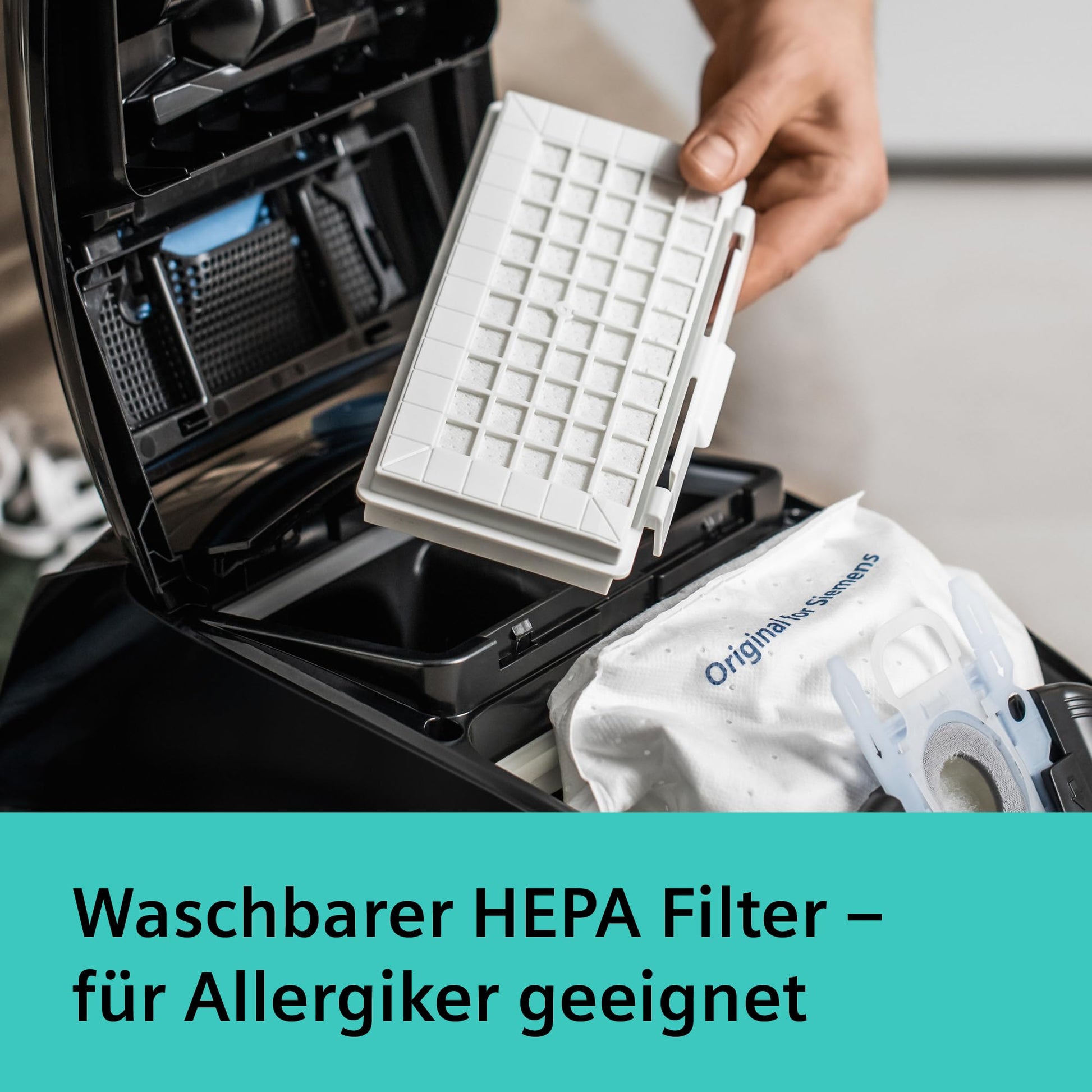 Siemens vacuum with bag Q5.0 Extreme silencePower VSQ5X1232, for allergy sufferers, hygiene filter, strong suction power on parquet, carpet and tiles, long cable, Made in Germany, 850 W, black