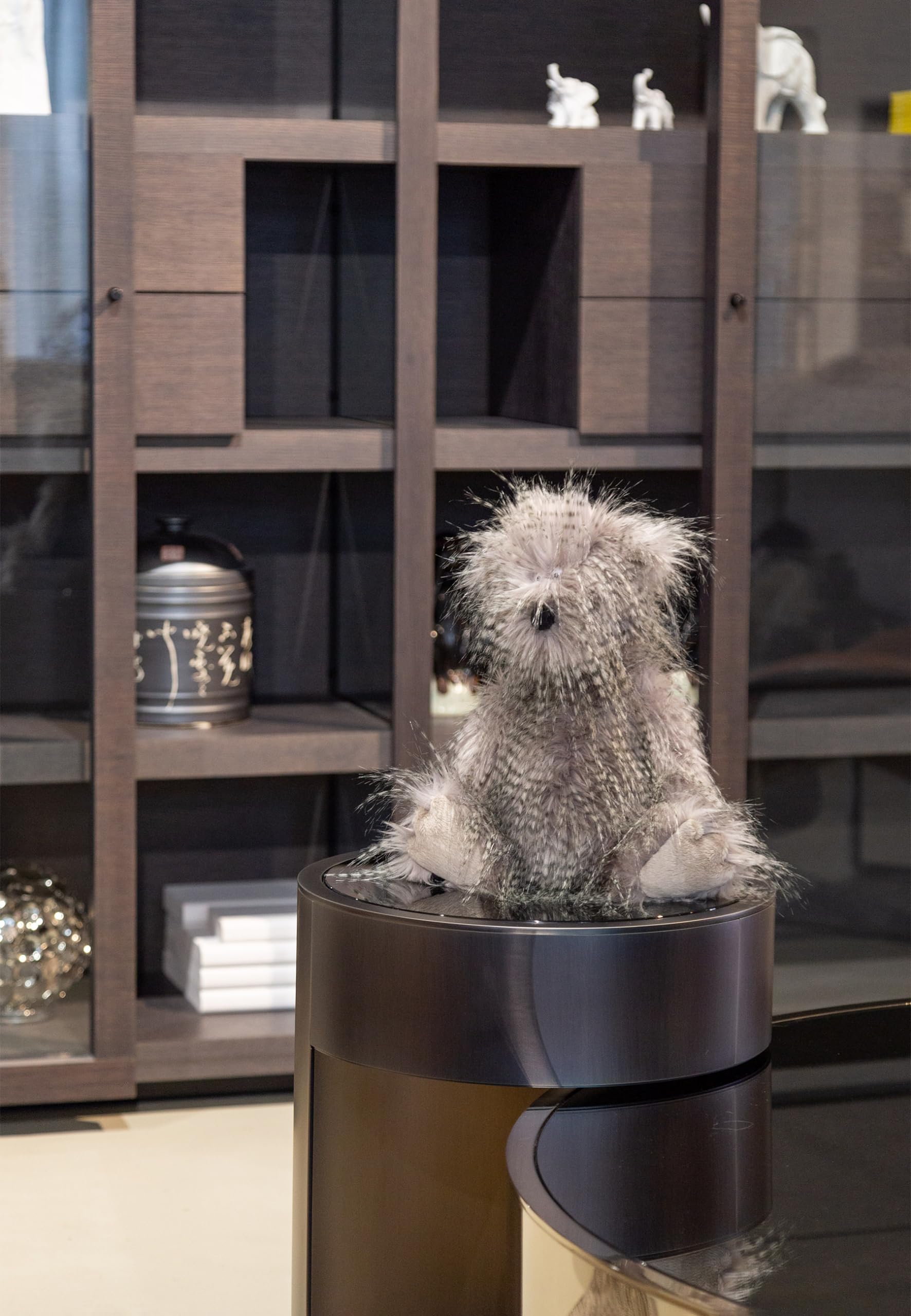 ["Oh Good! - Bear made of ultra-fine long plush in grey: He is so soft that you can't stop cuddling him - His trademark: round nose, closely spaced plastic eyes, protruding ears, long dangling arms, big feet