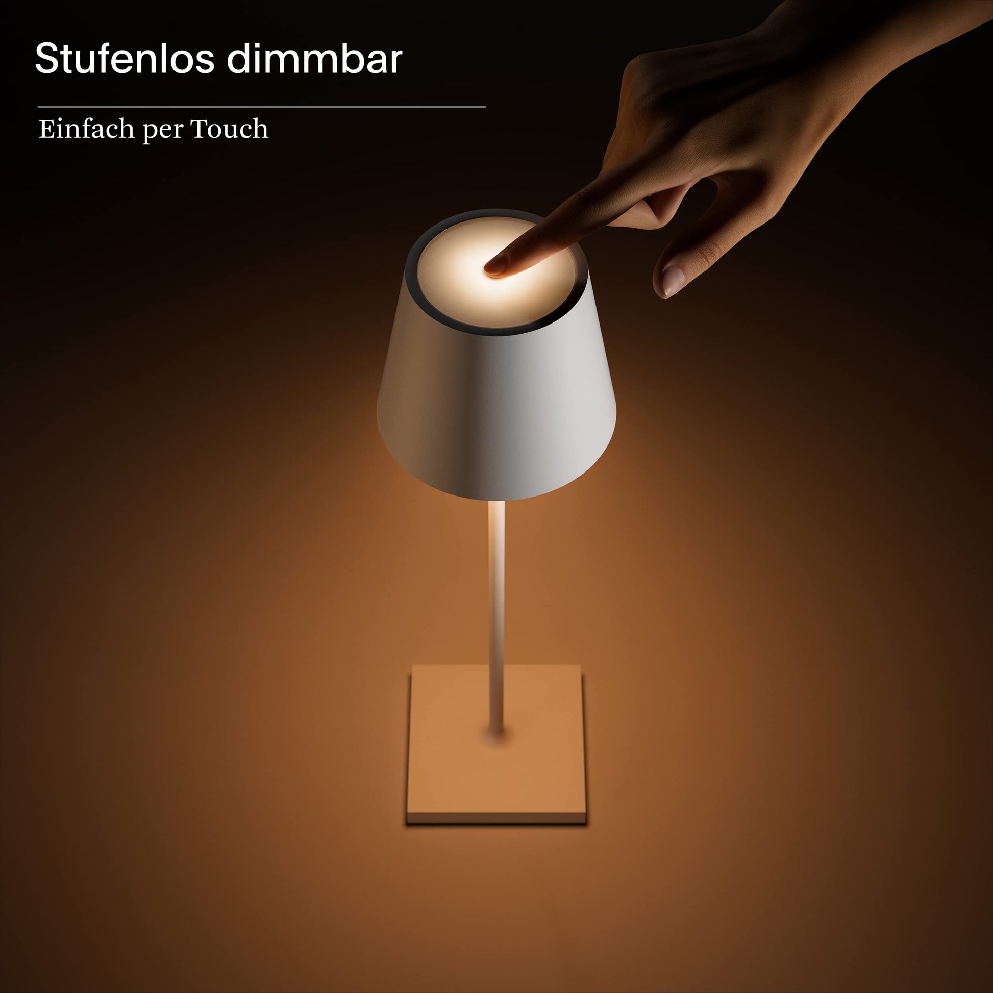 "Easy Operation: The lamp can be easily and intuitively switched on and off and dimmed via the touch switch. With its high weight (≈ 1 kg), it has a solid base.",
