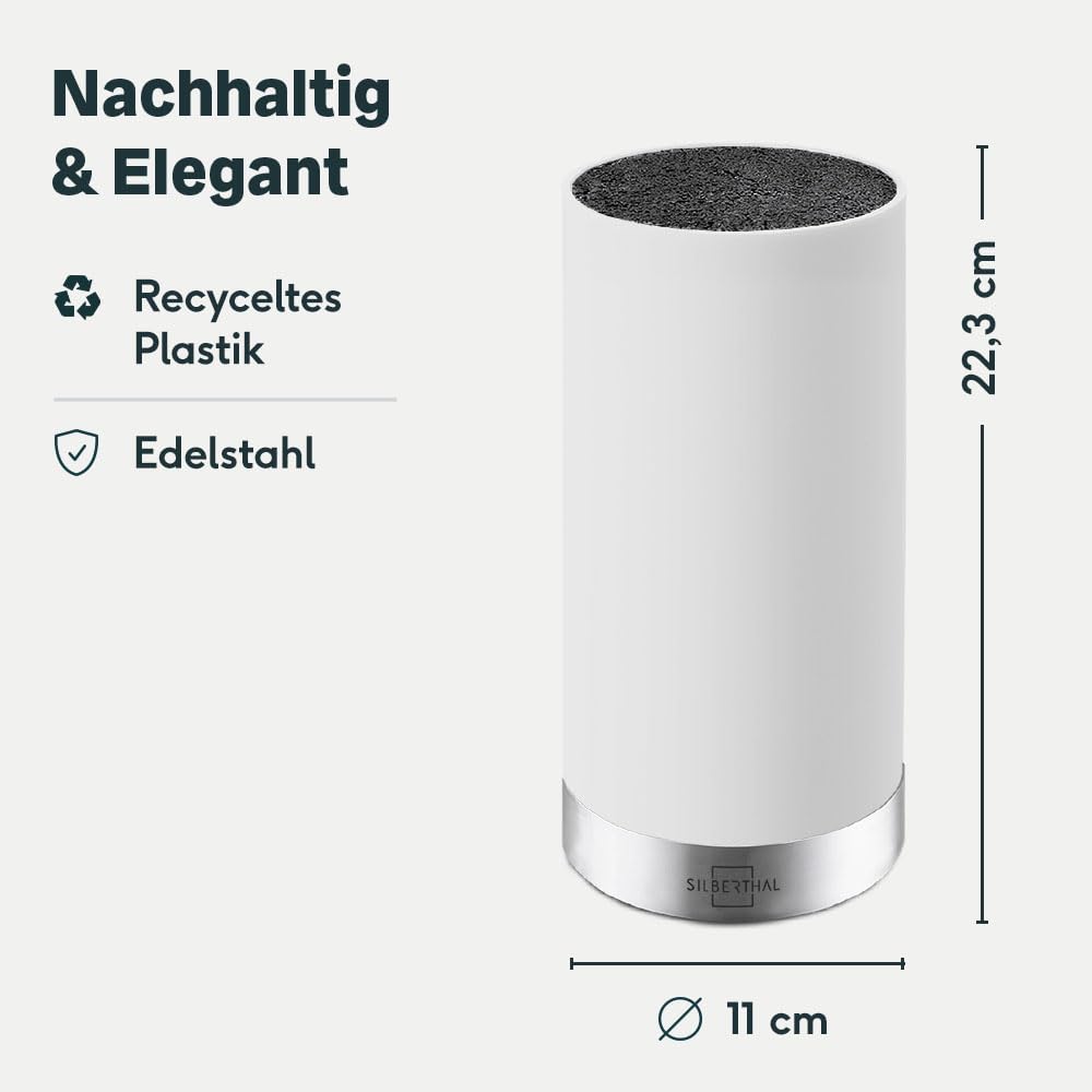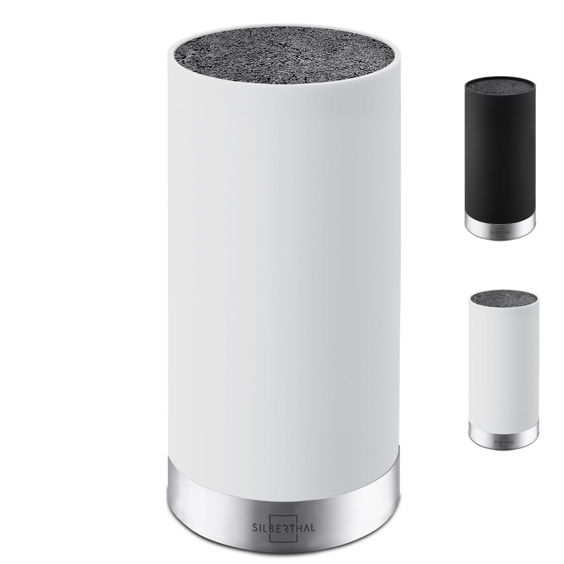 SILBERTHAL Universal knife block - removable bristle insert - without knives - unfilled - knife storage with stainless steel ring - White
