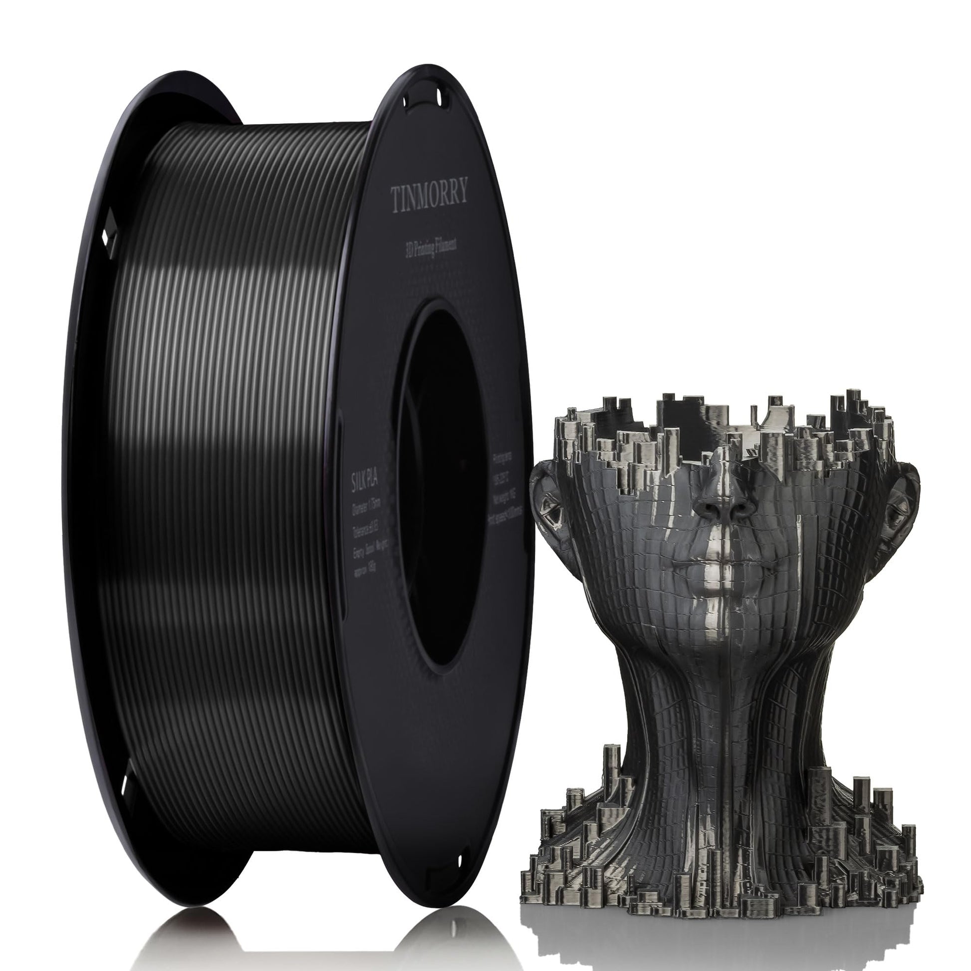 Silk PLA Filament 1.75mm, TINMORRY 3D Printer Filament, 1kg, 1 Spool, Iron Black