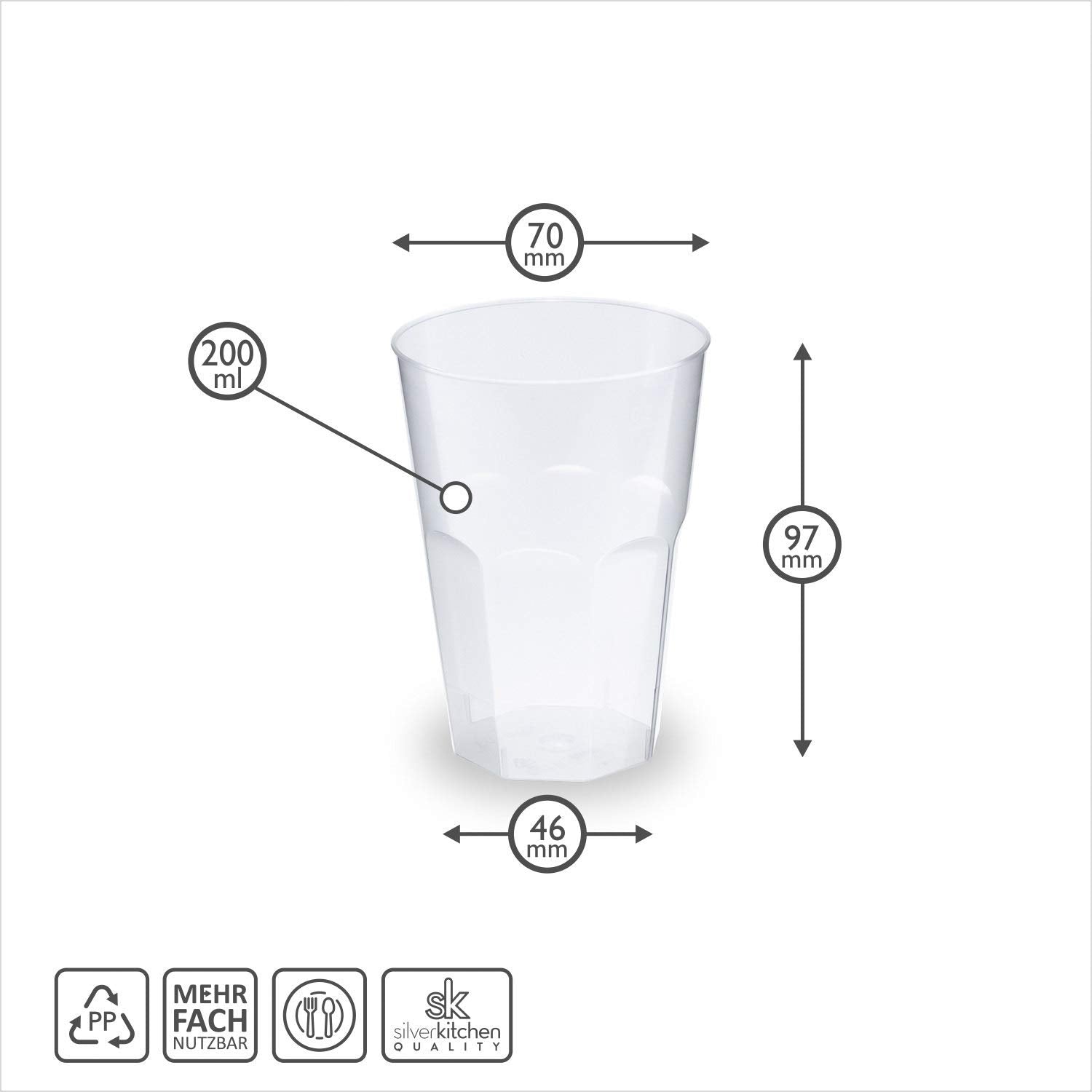 Silverkitchen 50x cocktail cups 0.2l reusable - stackable, dishwasher-safe plastic cups for cocktails & aperitifs, BPA-free with measuring line - Made in Germany.