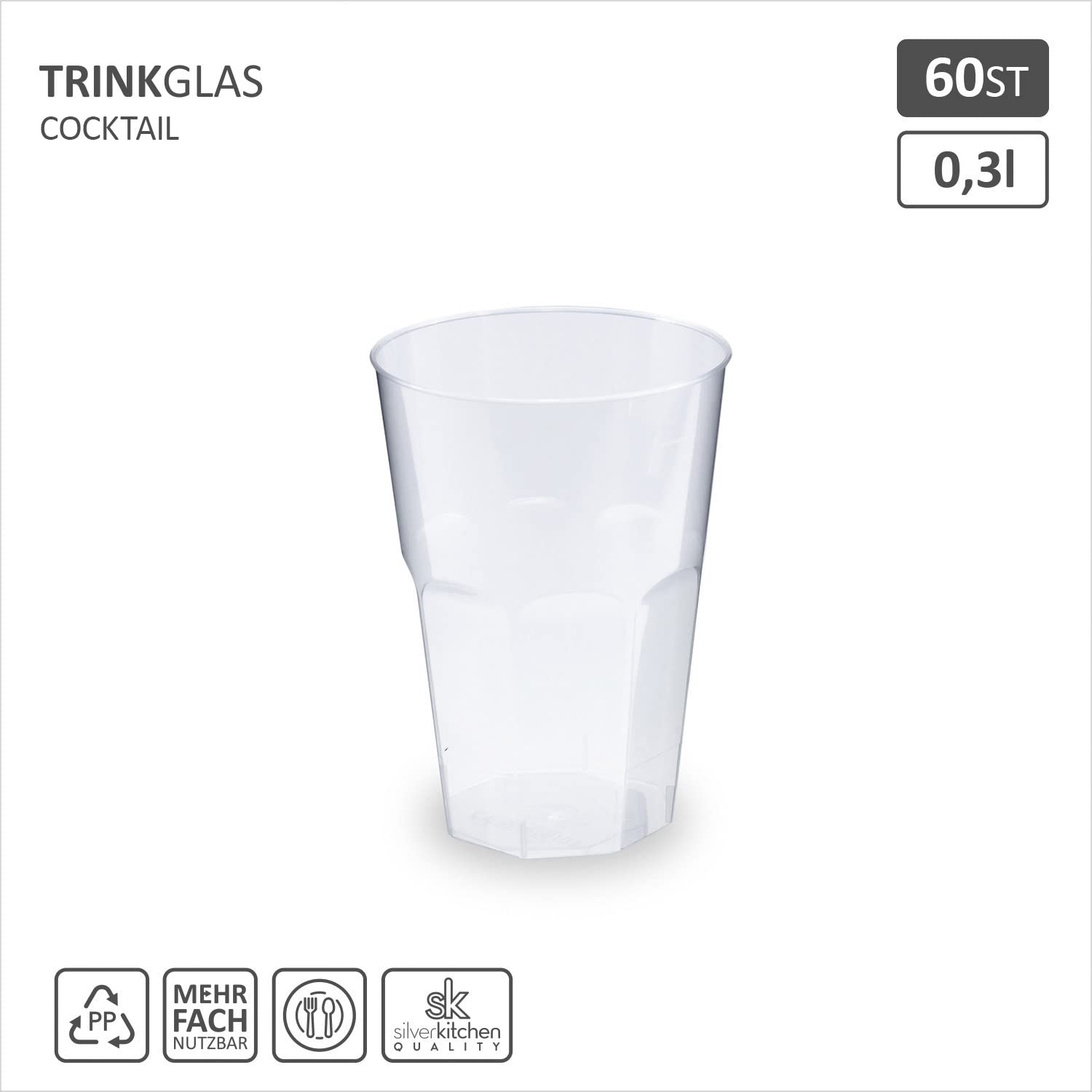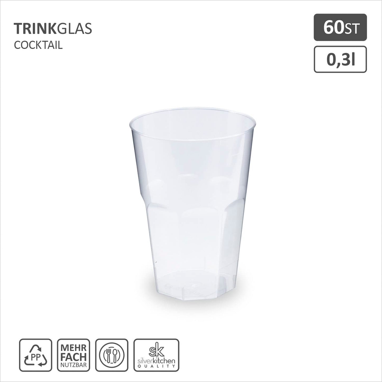 Silverkitchen 60x Cocktail cups 300ml - reusable party cups Cocktail cups hard plastic reusable drinking cups Made In Germany Cocktail cups 0.3 l (60 pcs)
