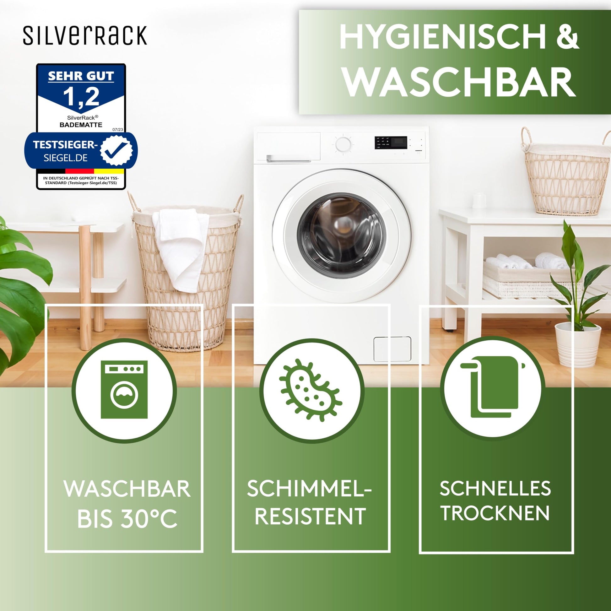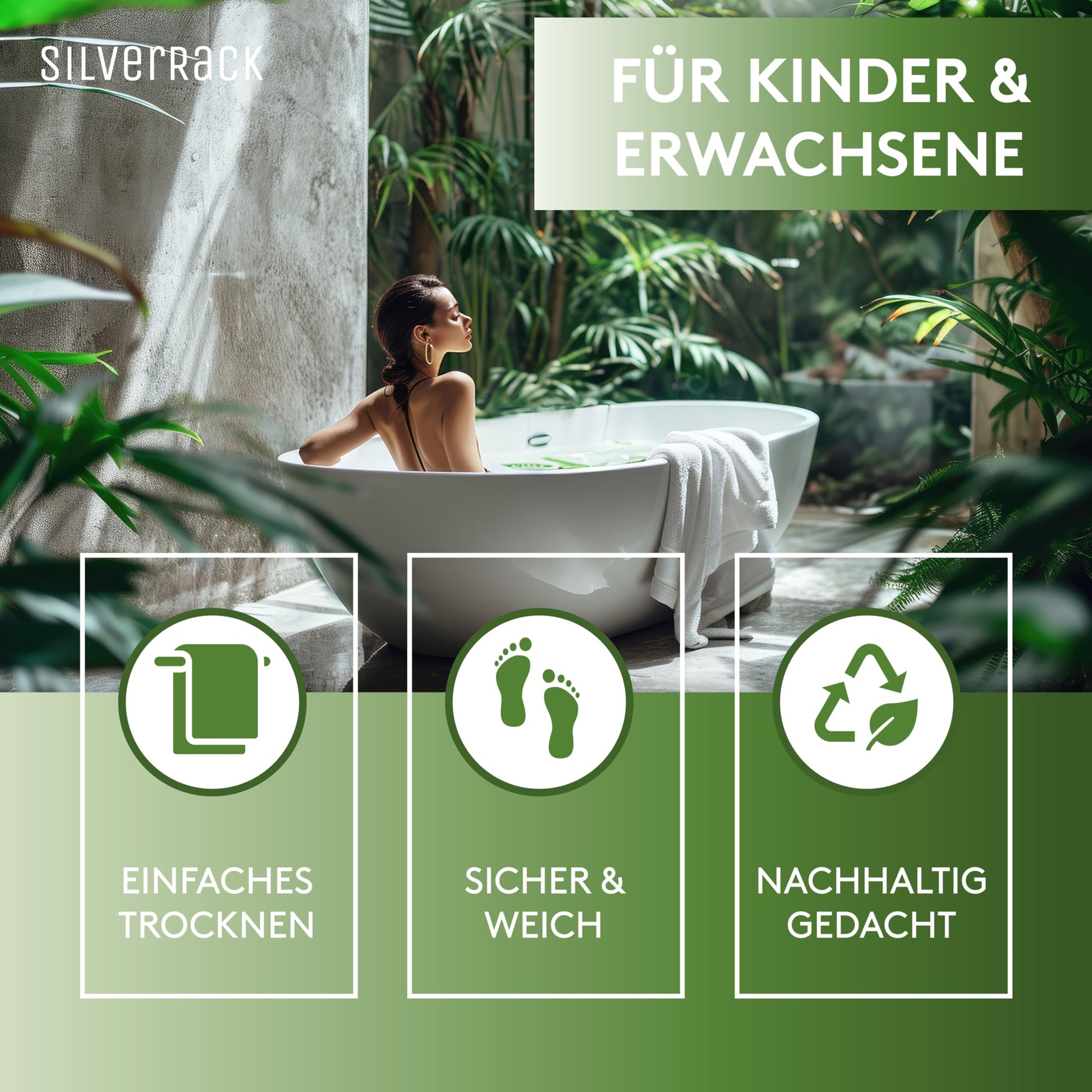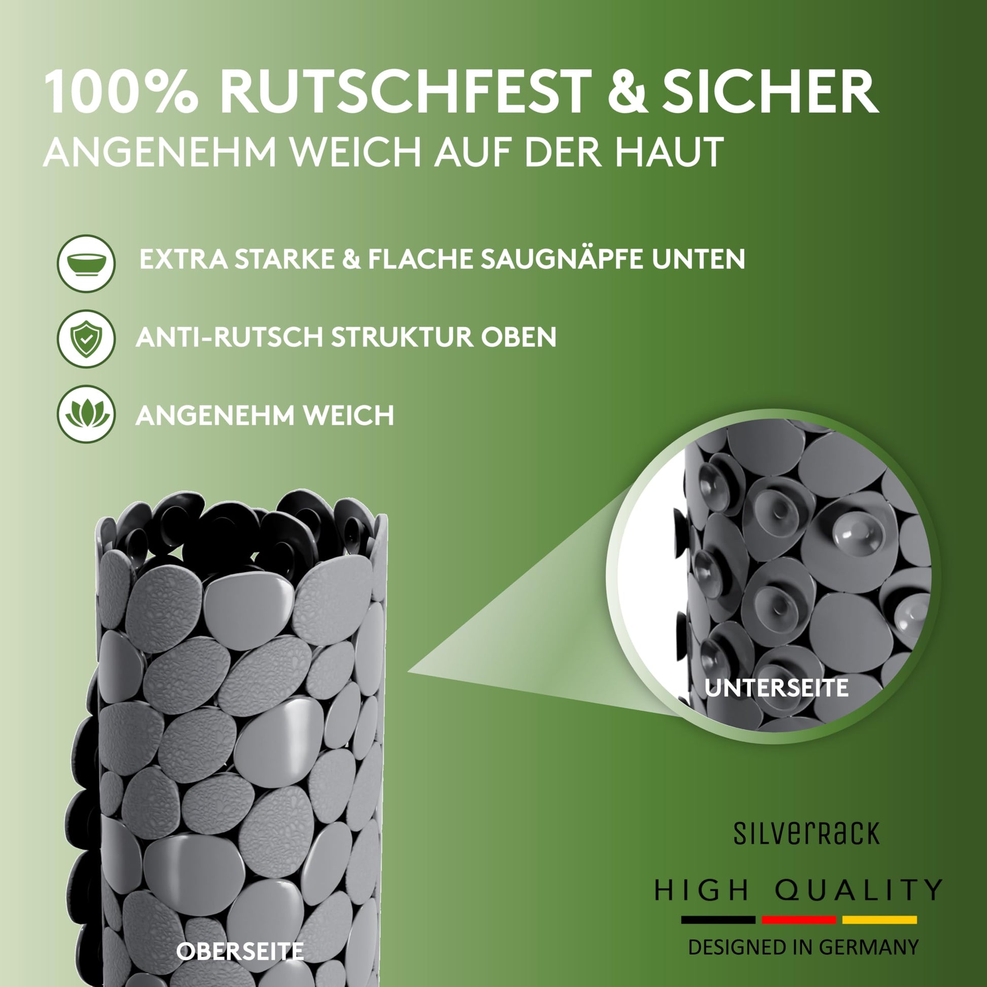 ["", "✅ 100% BABY & KINDER FRIENDLY - With the innovative and child-friendly DermaSensitive PVC, we want to distance ourselves from toxic and environmentally harmful materials and offer you the best option for safe bathing!", "✅ RUTSCHFEST & STANDSICHER - The anti-slip surface of our bathtub mat provides absolutely secure grip even when shampoo and soap are used: So don't worry anymore when your child plays in the bathtub.", "✅ GERUCH & SCHIMMELFREI - Our antibacterial, mold-resistant & machine washable bathtub mat from SilverRack. Extra large holes in the mat allow water to drain optimally - mold has no chance!", "✅ PERFEKTE PASSFORM - The non-slip blue tub insert fits perfectly with the siphon and is particularly long with its size of 69x36cm: This ensures maximum safety in the entire bathtub thanks to the slip-resistant mat!", "✅ ?QUALITÄTSVERSPRECHEN - The shower mat is manufactured to the highest standards. Because we are 100% confident in our quality, you will receive your money back - up to 90 days after the date of purchase!", ""]