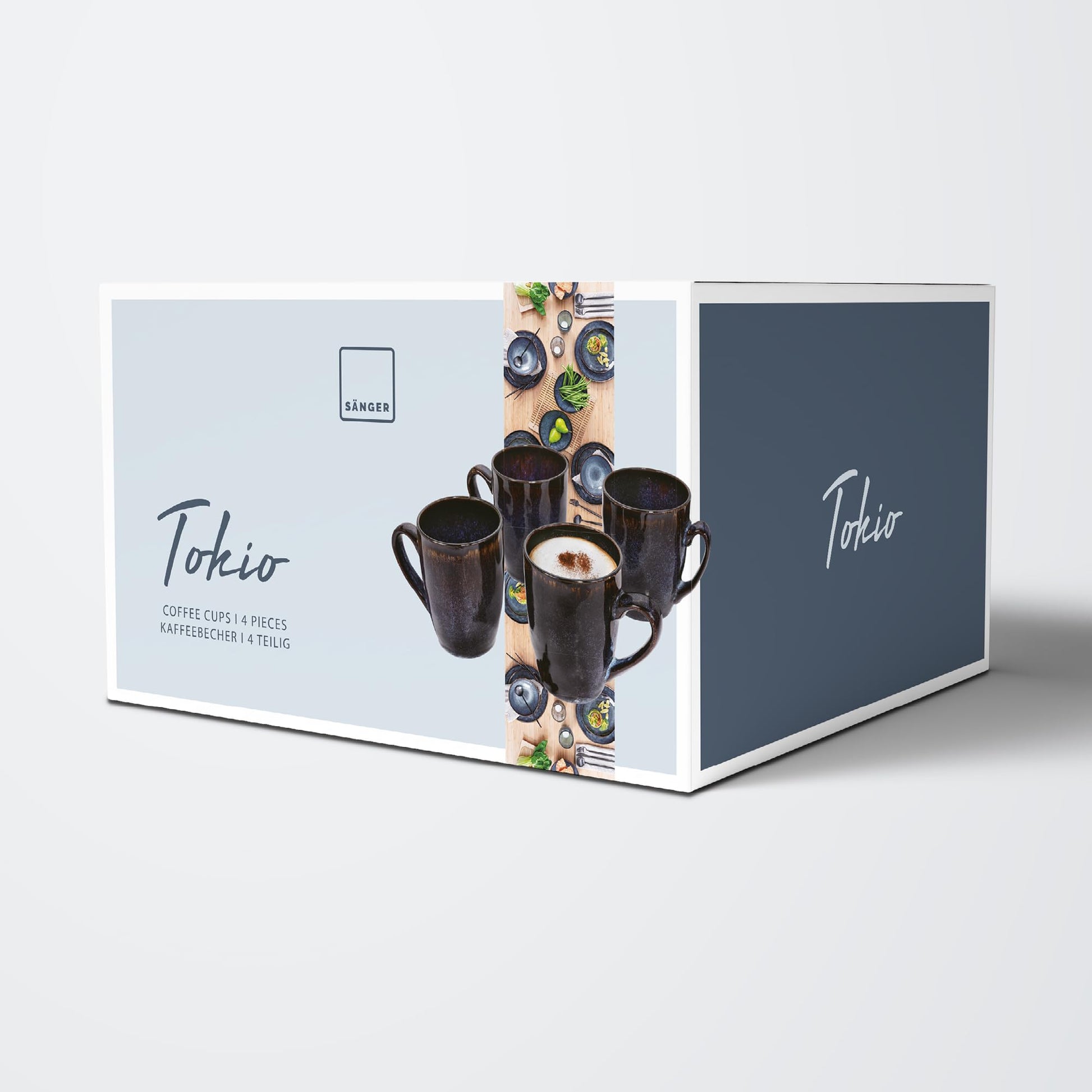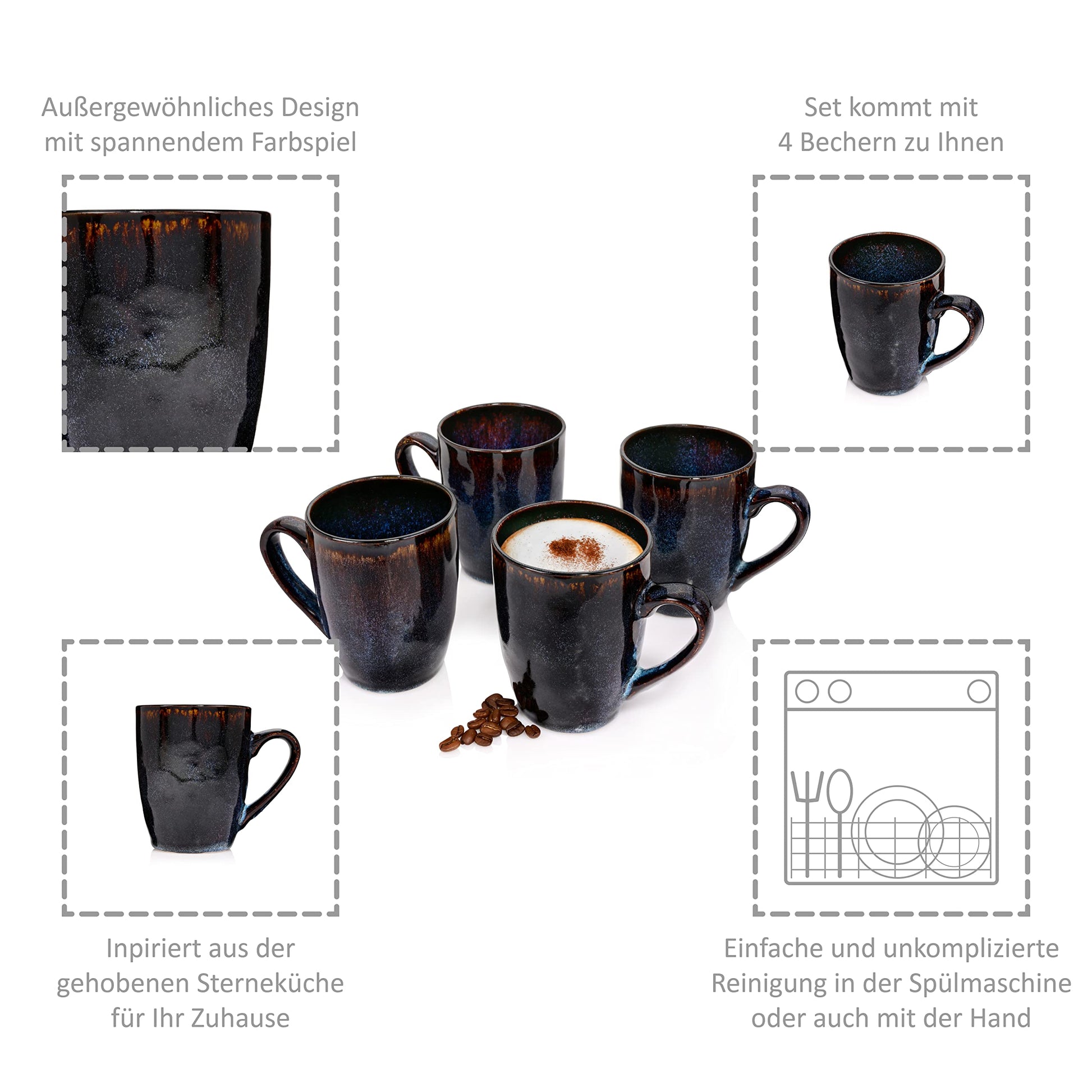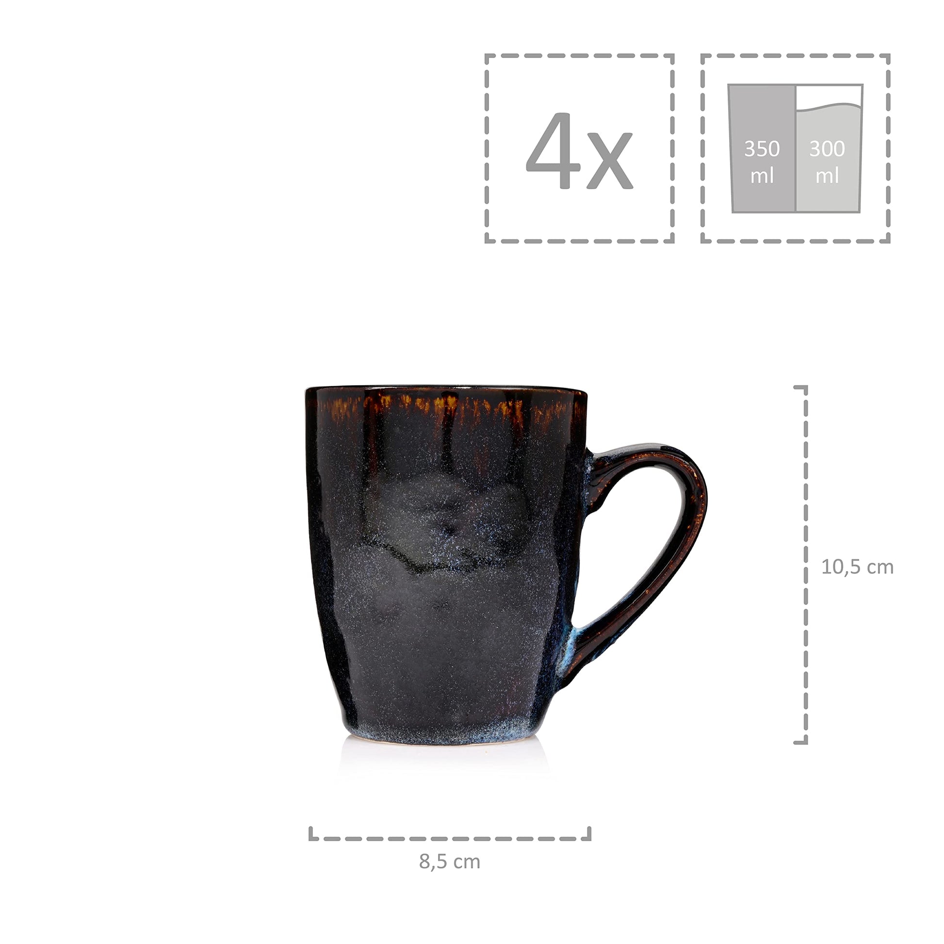 Singer | Coffee cup set Tokyo 4 pcs, coffee mug set for 4 persons, stoneware cup dishwasher safe, handmade cup set, mug set blue-black with brown accents 300 ml | PREMIUM COLLECTION