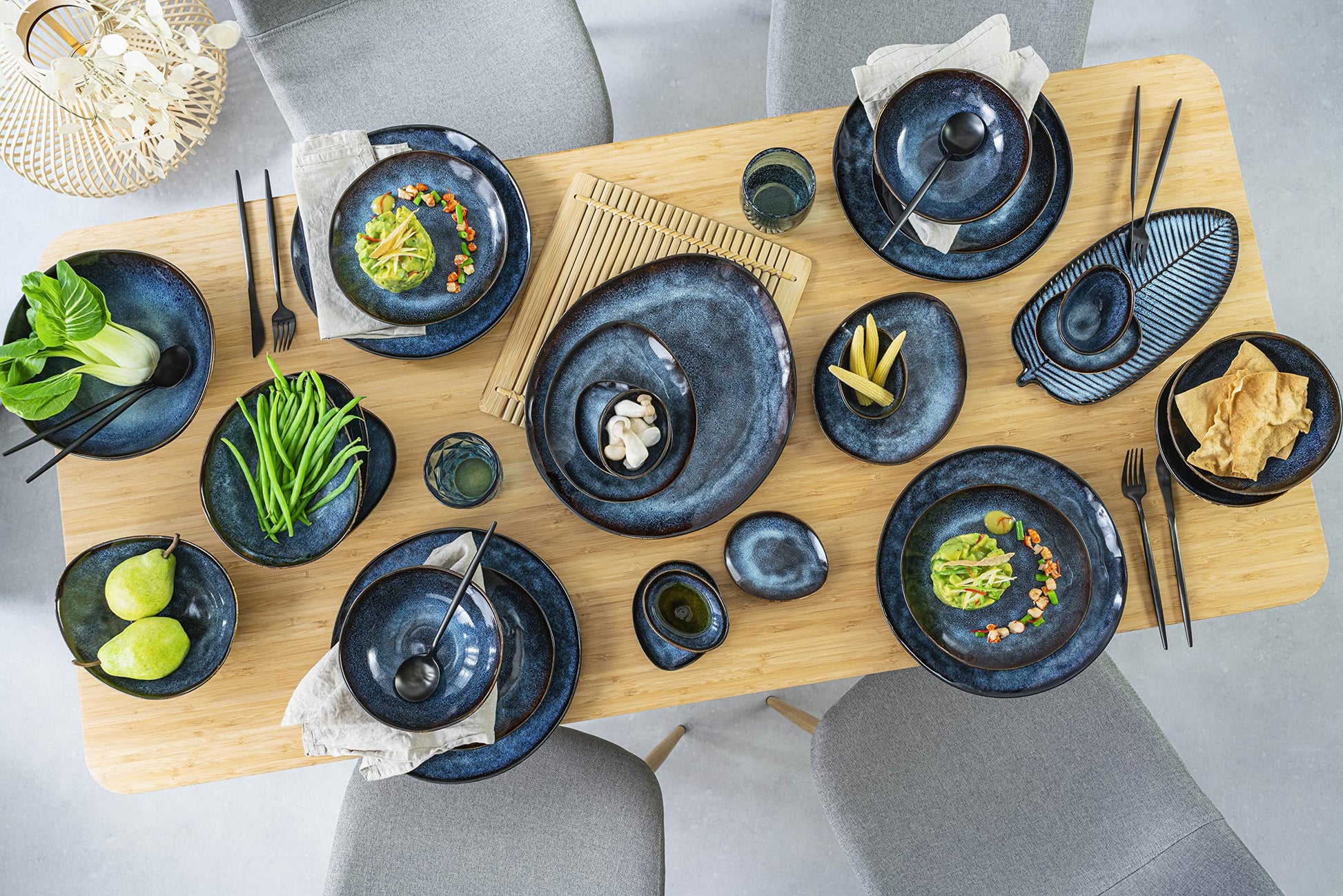 ๐๐๐๐๐๐๐๐: The blue-black coffee cups with brown accents impress with their handmade look all the way. This makes every hot drink a real pleasure. Of course, the cups are dishwasher and microwave safe.