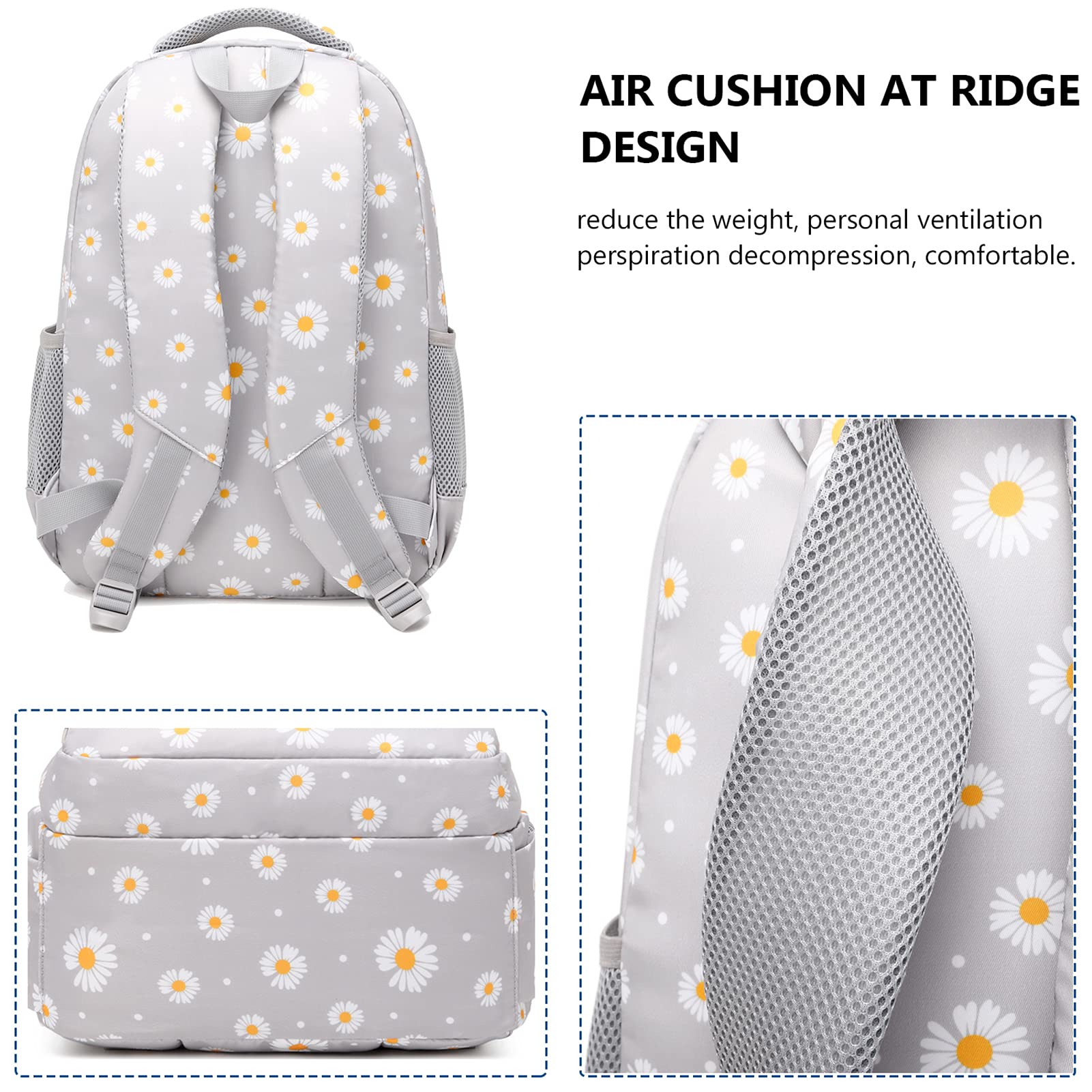 SIVENKE school backpack for girls, teenagers, and women. Daisy design set includes backpack, lunch bag, and pencil case for school and leisure.
