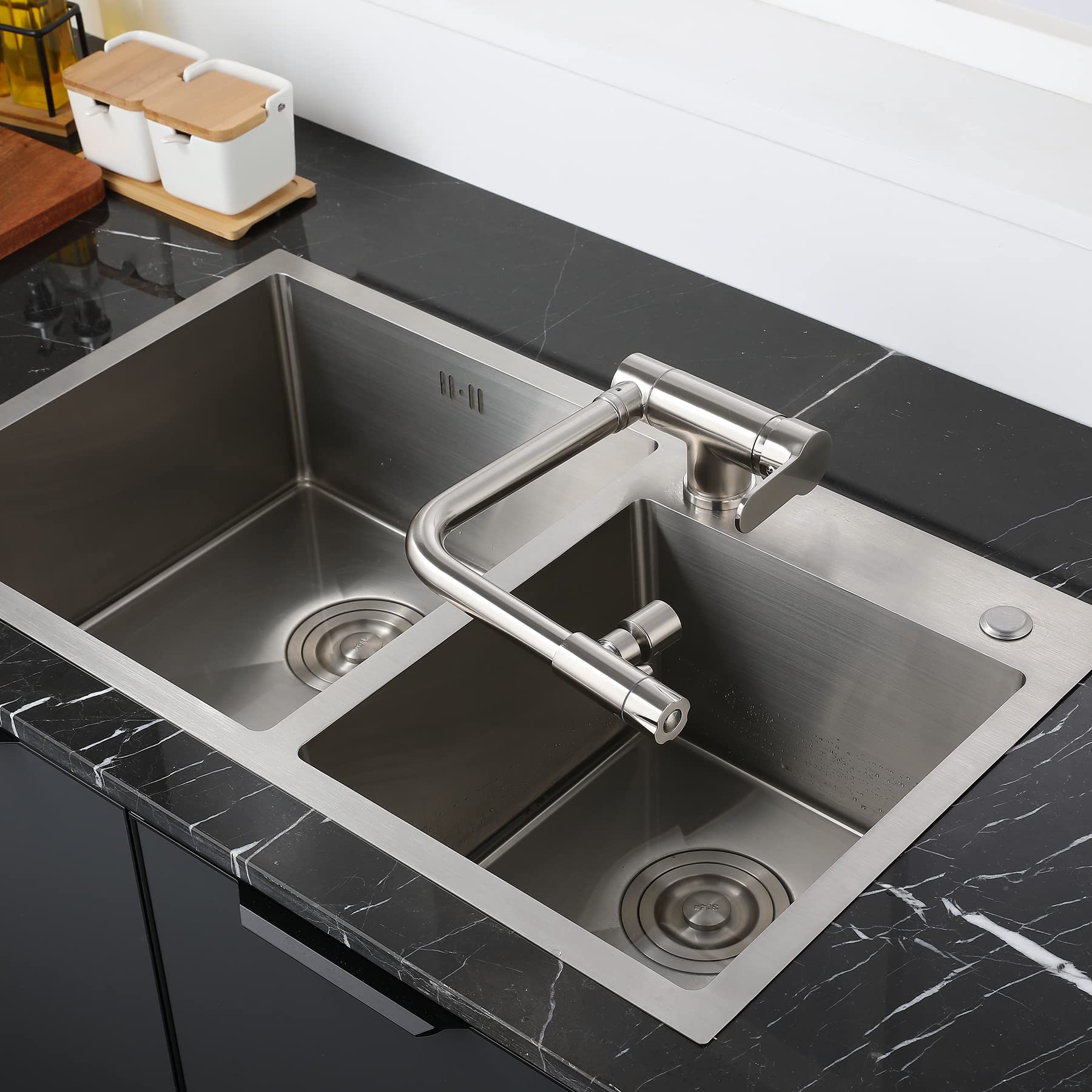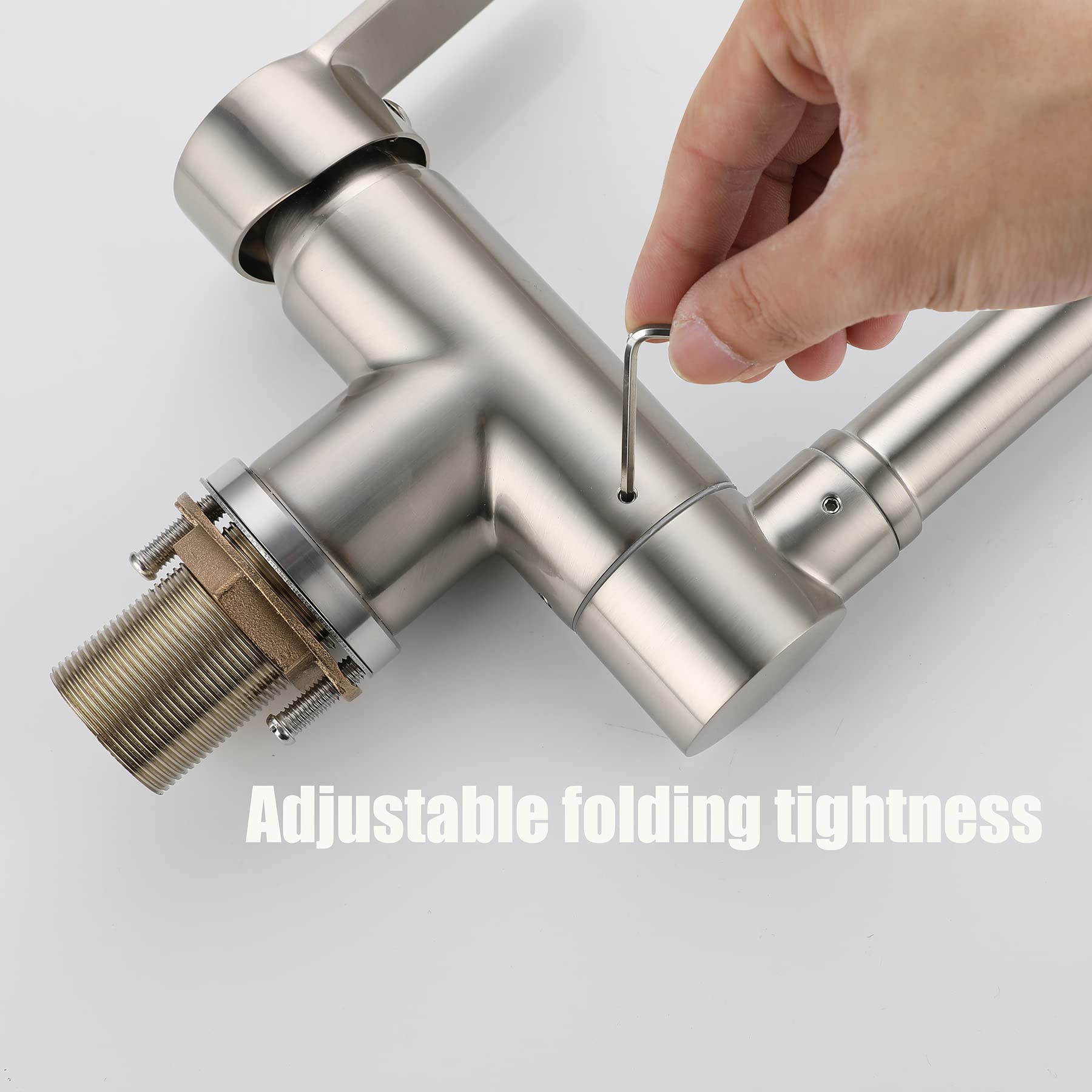 ["3 Way Kitchen Faucet; Drinking water faucet features a 3-way reverse osmosis system, allowing you to drink cleaner, safer, and healthier water instantly. Compatible with most commonly used water filter systems. No need to purchase another water purifier.","Especially designed for opening windows in the kitchen, to solve the problem of opening and closing windows in the kitchen, flexible folding, height after folding is 75 mm","The kitchen faucet can be folded down 90° and rotated 360°. When the window is opened, it will bend forward 90° so that the window can be opened without obstruction. Therefore, it is particularly suitable for use under the window. Suitable for single and double sinks. Connect hot and cold water","High quality; The kitchen faucet is made of brass H59, chrome-plated surface layer (lead-free). Resistant to corrosion and high temperatures, bright as new for long-term use, no noise","SJQKA: Adhere to the use of the highest quality raw materials, the best components, and the most advanced manufacturing processes. We promise to provide high-quality after-sales service for 3 years. Easy to install, please do not comment on us lightly. We have a high-quality after-sales service. You can contact us at any time." ]
