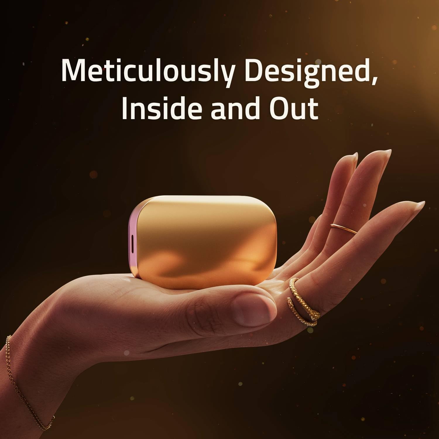 Stylish and ergonomic design: Compact size (74x46mm) and lightweight (53g). Sturdy aluminum casing in metallic champagne gold.