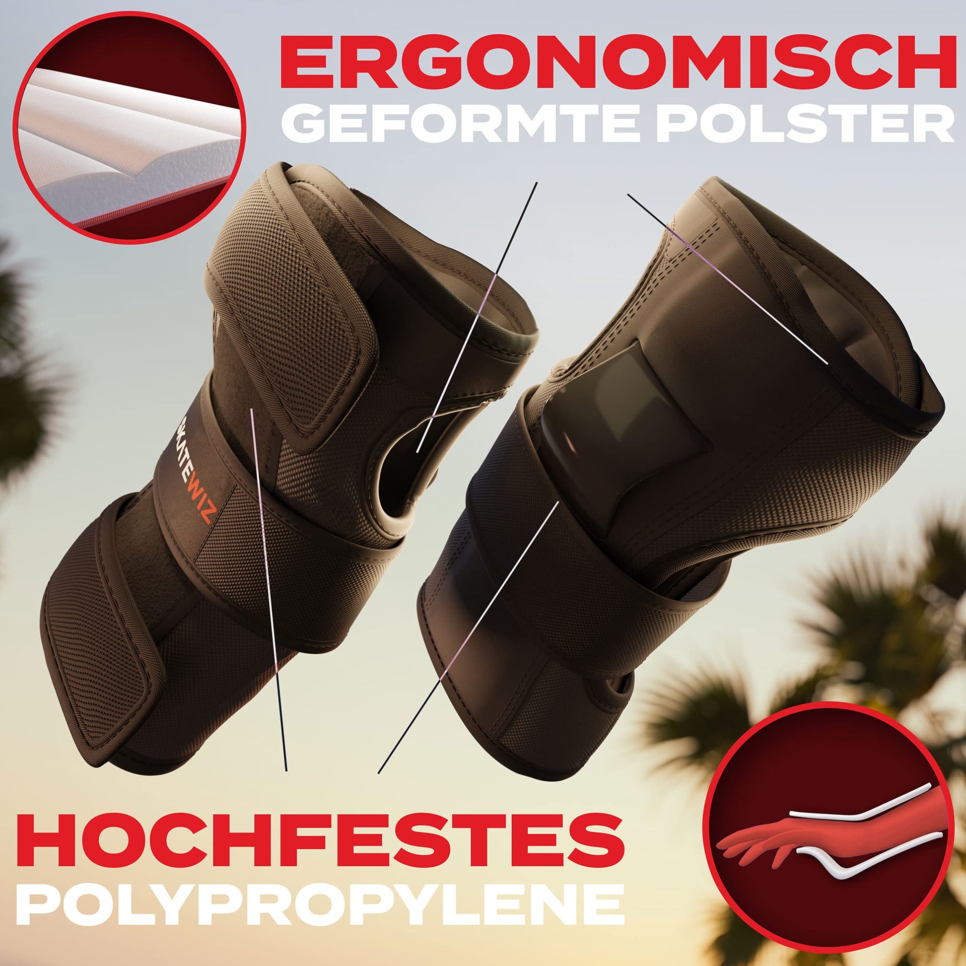 "DURCHDACHT: Equip yourself with protective gear you can trust. The wrist guards, elbow pads, and knee pads for adults have been designed to absorb harder impacts and provide extensive protection"