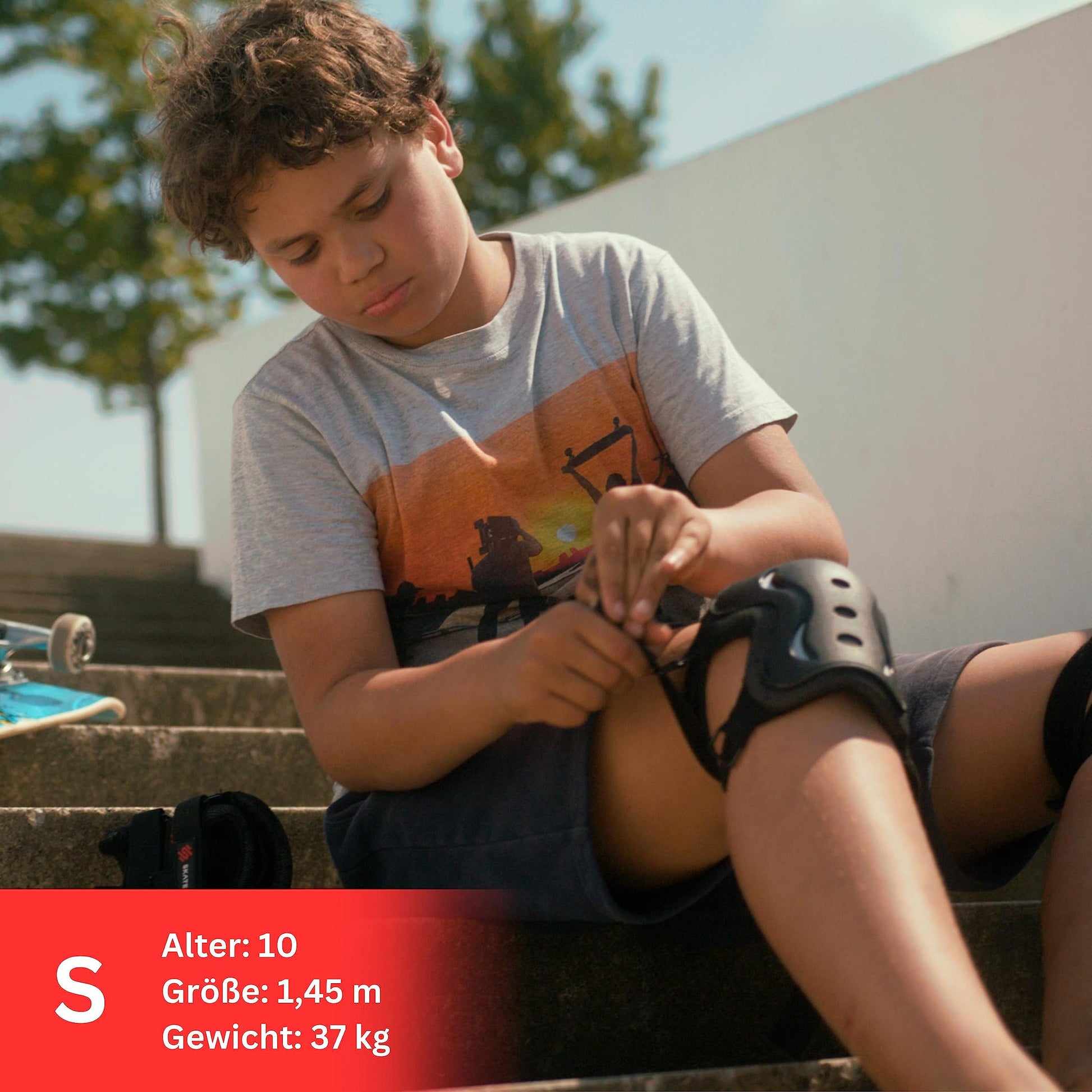 "Safety: Protect your joints with the skate guard set for children with 6 professionally developed pads from SKATEWIZ, including children's knee pads, elbow pads, and hand pads"