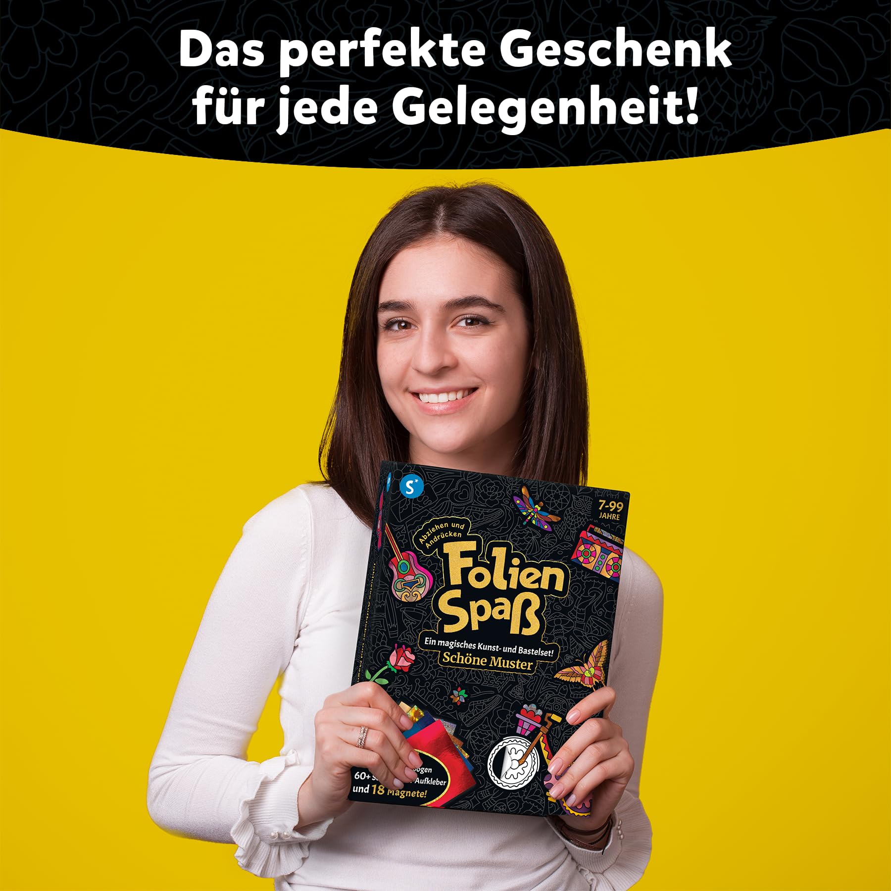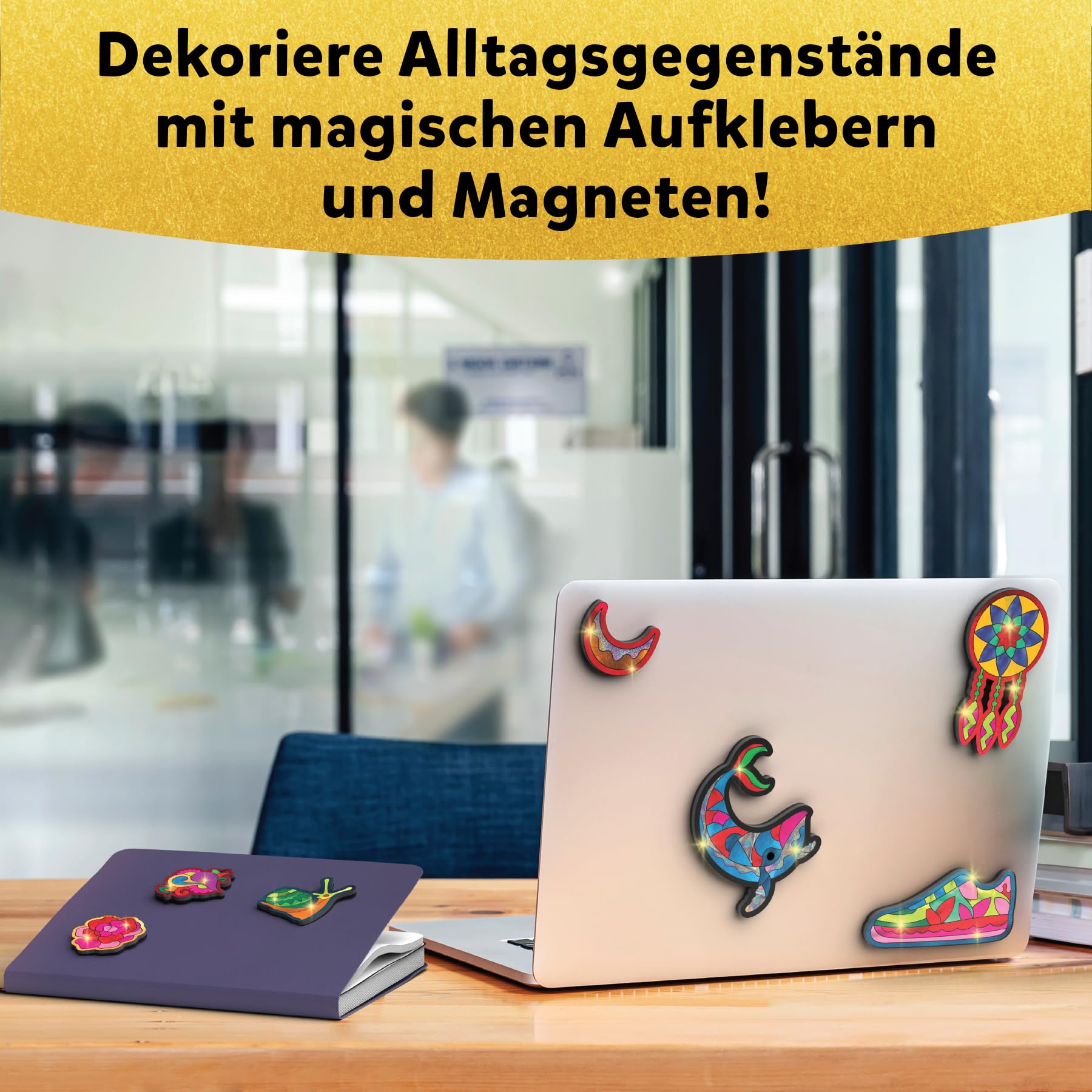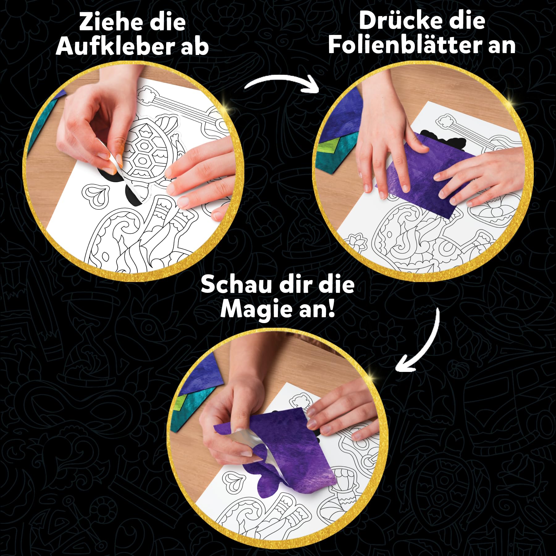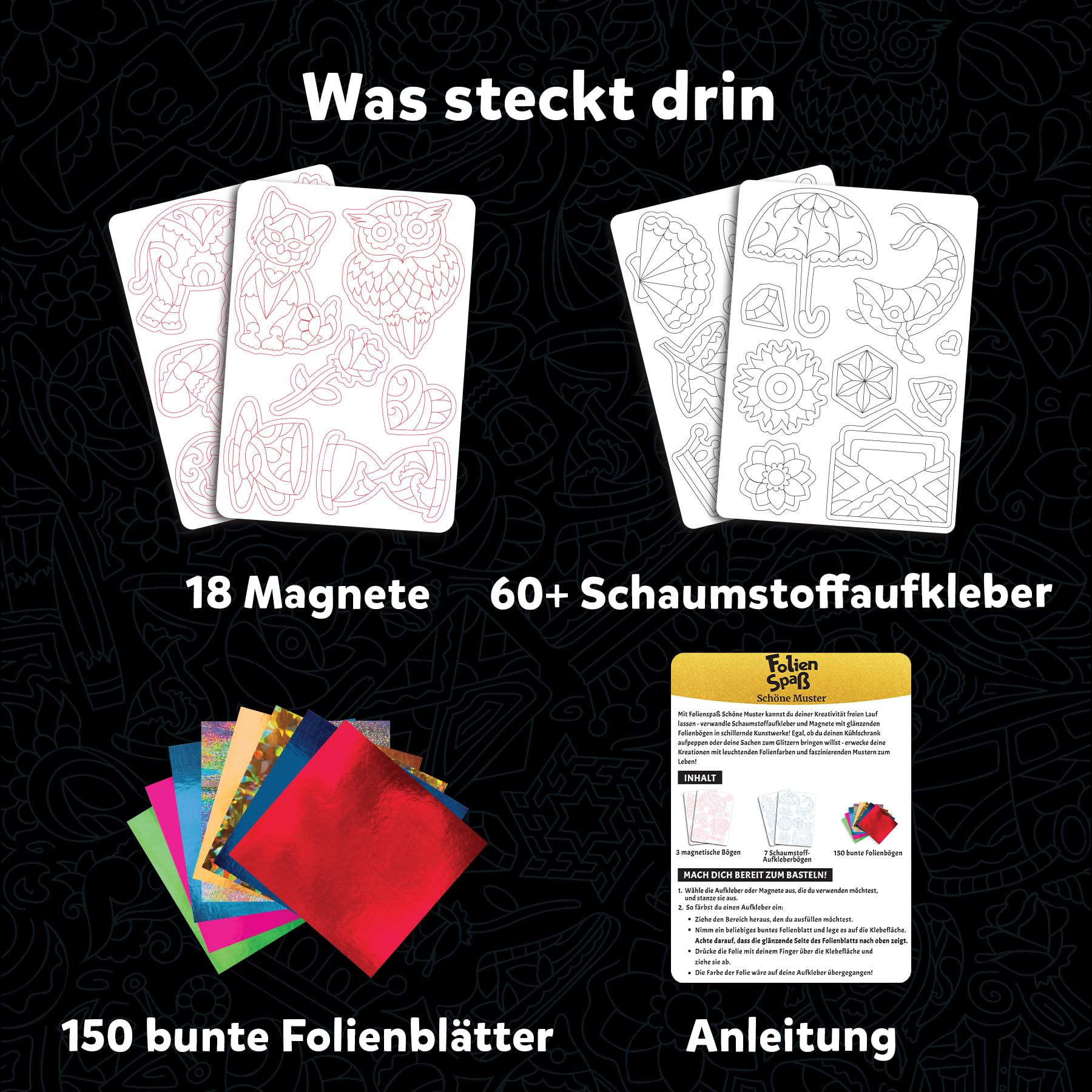 "MAGIC ART AND CRAFT ACTIVITY WITH FOIL: Foil Fun is a magical, mess-free activity that inspires hours of sparkling fun. Transform foam stickers and magnets with shiny foil sheets into dazzling artworks! Whether you want to decorate your fridge or make your belongings glitter - bring your creations to life with bright foil colors and fascinating patterns!