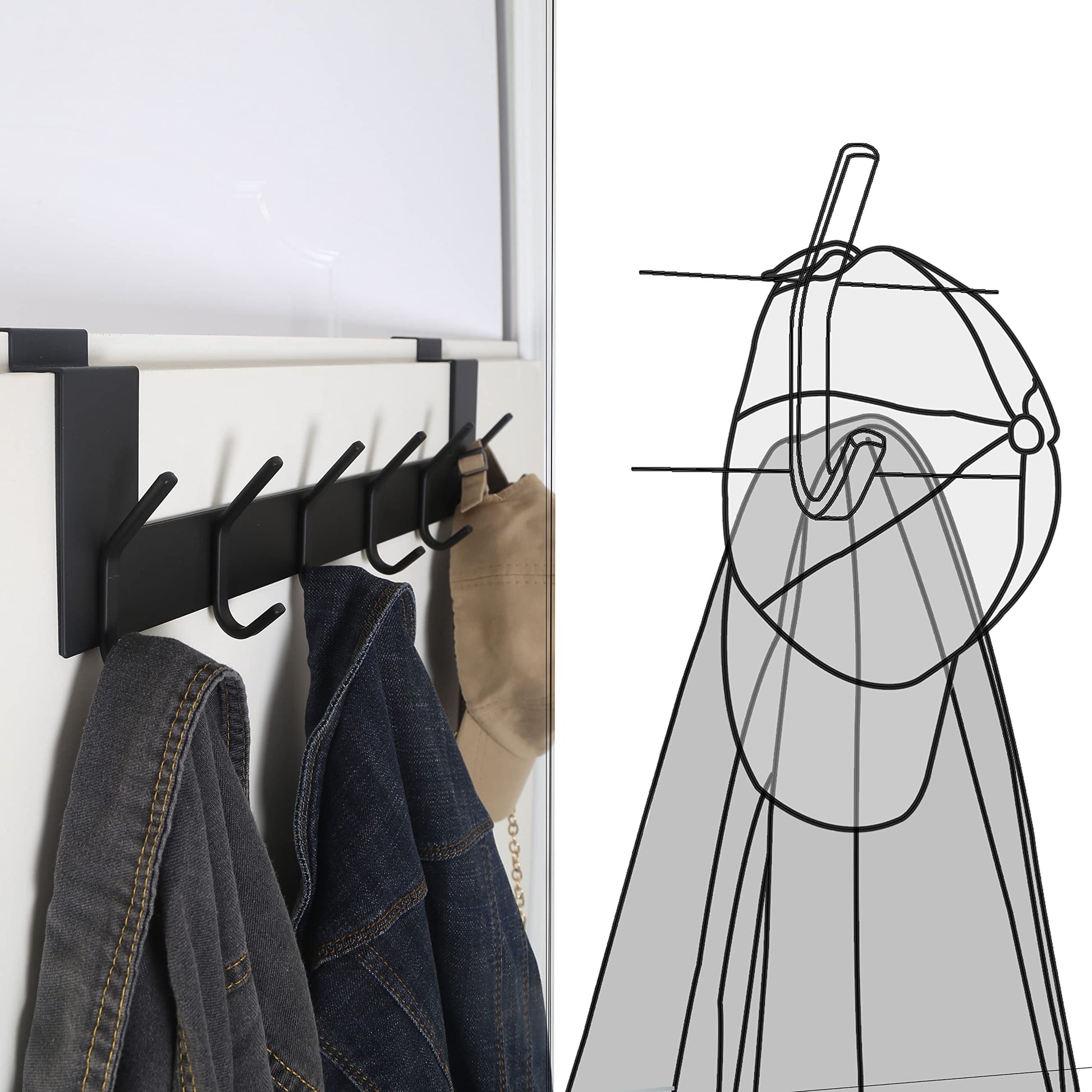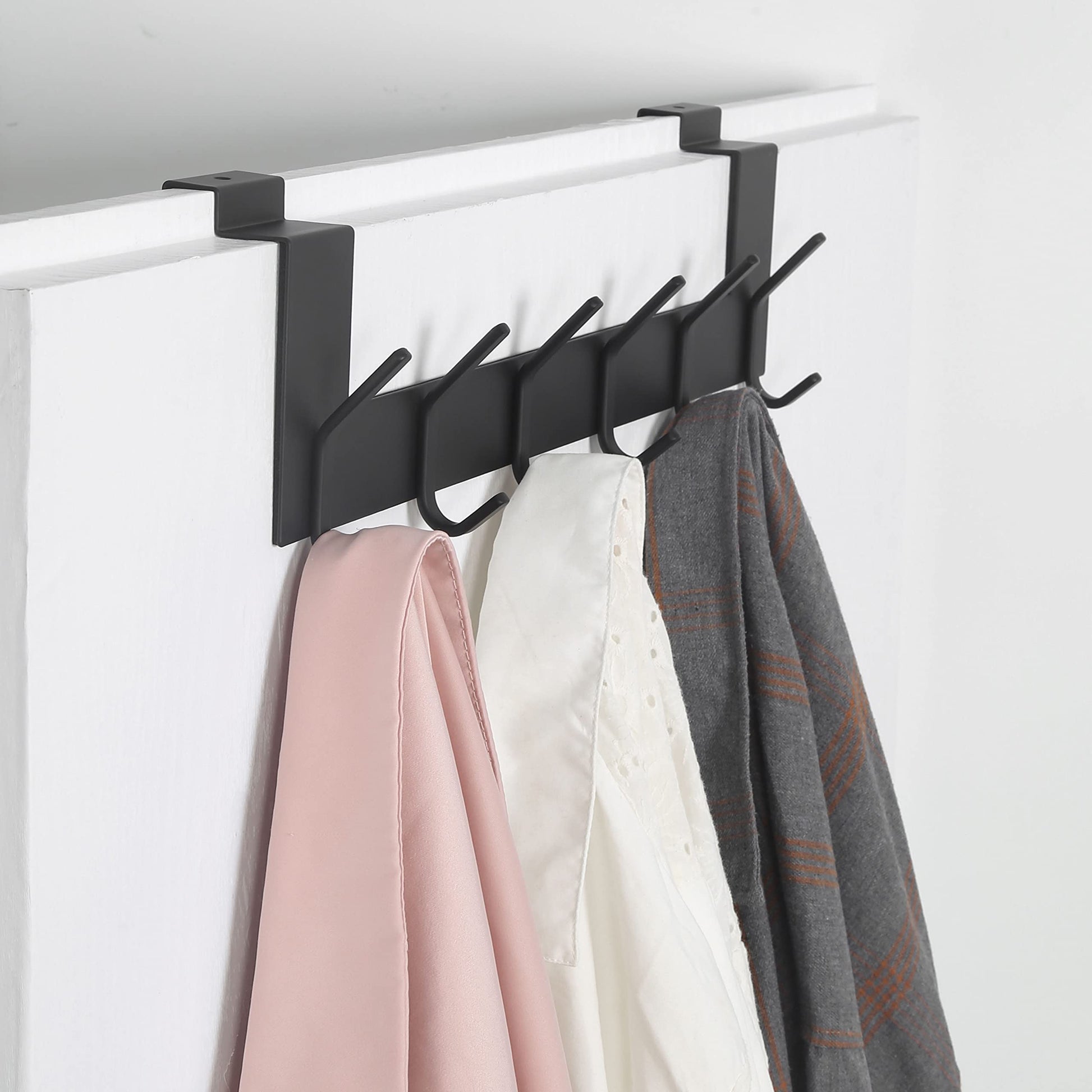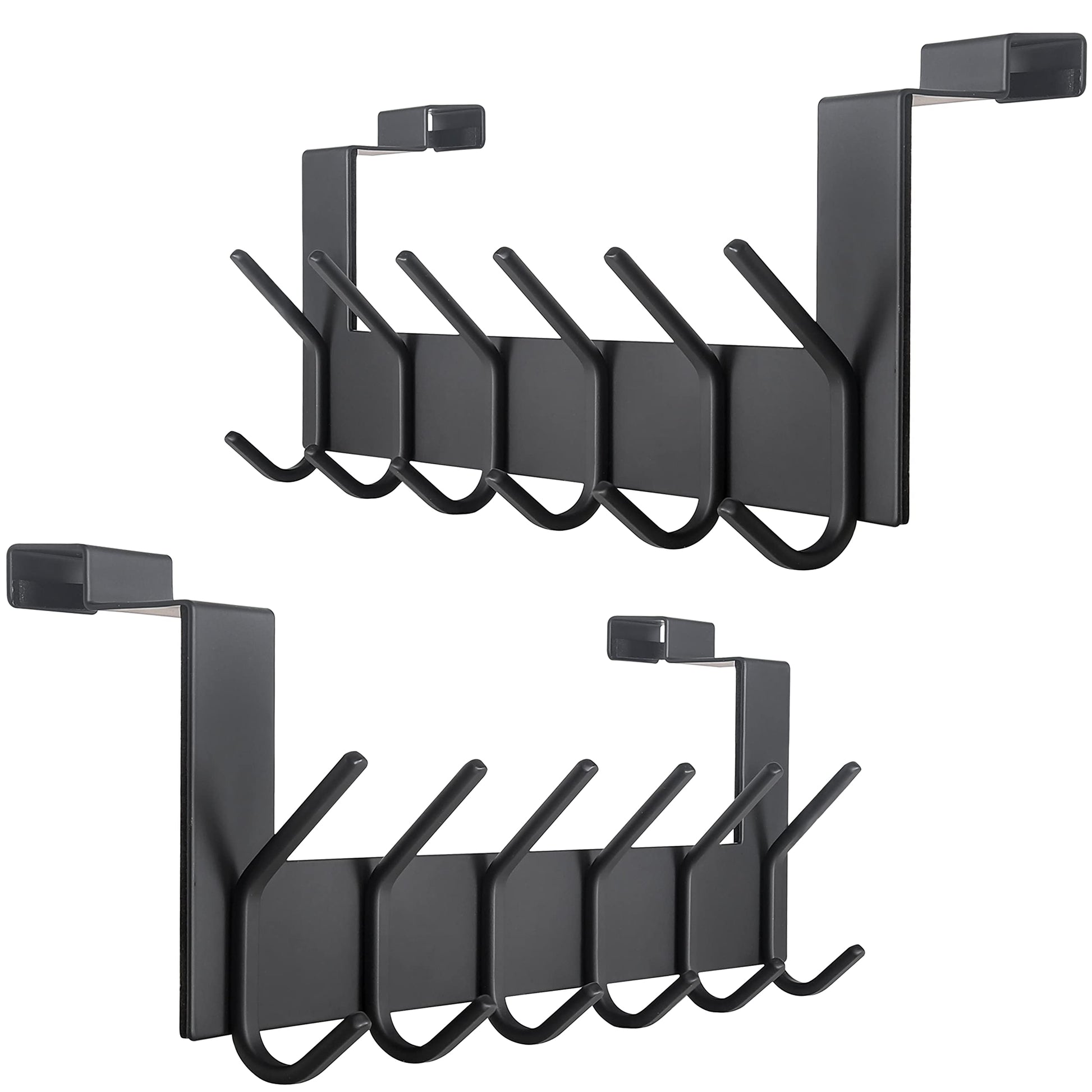 SKOLOO Door Hooks with 6 Hooks, Metal Over Door Hook Rack Inside - 2 Pack Coat Hooks for Towel Holder, Coats, Black