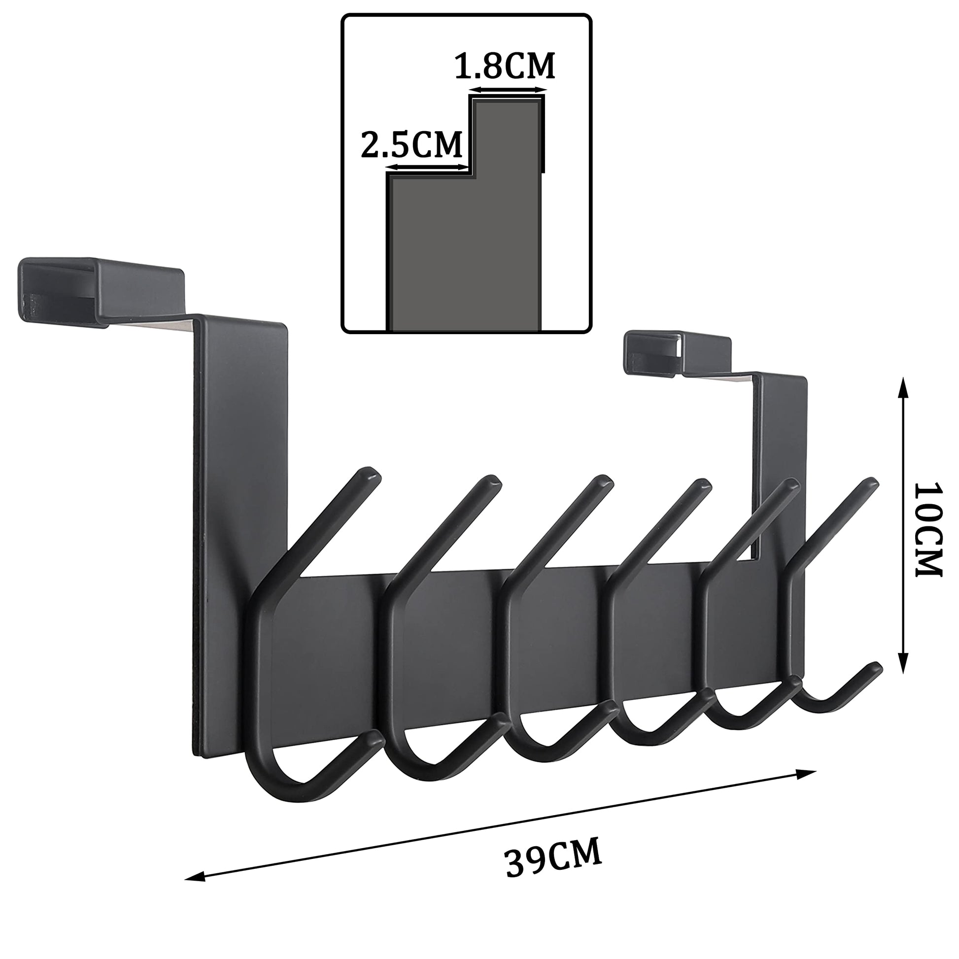 ["High-quality Metal Door Hooks: Sturdy clothes hooks with 6 hooks welded on, measuring approximately 39 x 2.5 x 10 cm. The folding depth of the rack arm is 1.8 cm x 2.5 cm.",