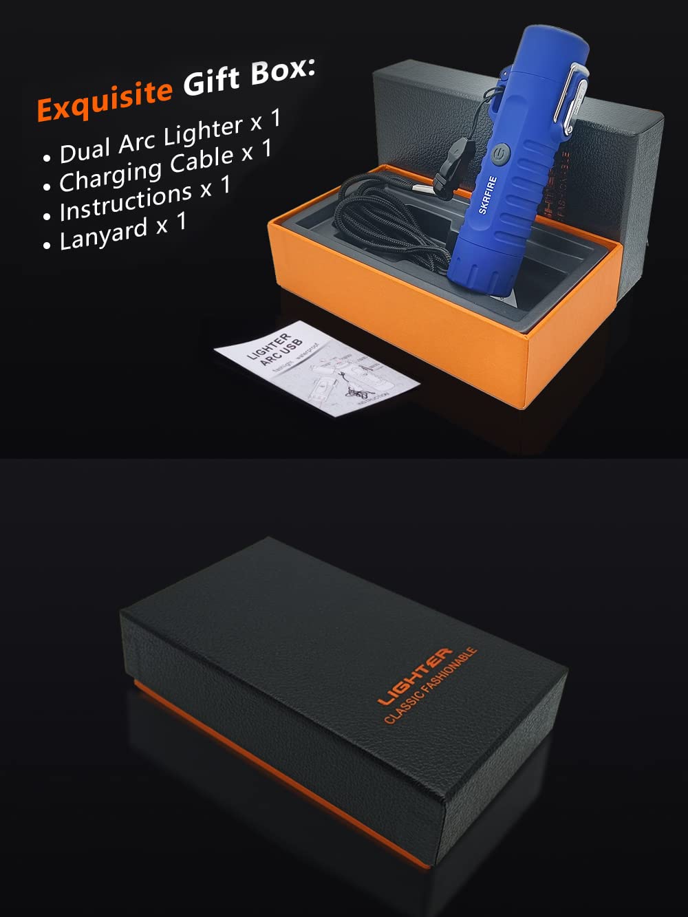 ð¥["ð¥ãStrong Water Resistanceã The sealed lid of this electric lighter makes it water resistant. Our product complies with the IP56 standard. It can be stored in water. This electric lighter is perfect for camping, hiking, hunting, or other outdoor activities.","ð¥ãUpgraded Flashlightã Compared to its predecessor, this windproof lighter has been greatly improved in terms of flashlight functionality and battery capacity. 100 lumens LED flashlight creates a huge beam of light. The beam distance is 20 meters and there are three modes: (high, low, and SOS/emergency). Powered by an integrated 360mAh lithium battery.","ð¥ãEconomical & Eco-friendlyã Compared to other old-fashioned electric lighters. The housing of our flashlight lighter is made of an aluminum alloy and ABS. The improved craftsmanship makes it practical and durable. Non-slip surface with hand strap and clip for better carrying. Built-in rechargeable lithium battery, no gas or butane required.","ð¥ãAfter Sales Serviceã This plasma lighter has 7 seconds automatic shutdown protection, short circuit protection, and leakage protection, windproof arc ignition, ABS + zinc alloy, safer and more durable lighter, a perfect outdoor lighter, camping fire starter, emergency fire starter, etc.","ð¥ãHoliday Giftã This windproof camping lighter looks very noble and elegant. It is the perfect gift for family, friends, relatives, partners, and you. (Note: If you don't like this lighter within 30 days or have any problems with it, please feel free to contact us, we are always here to help you)"]