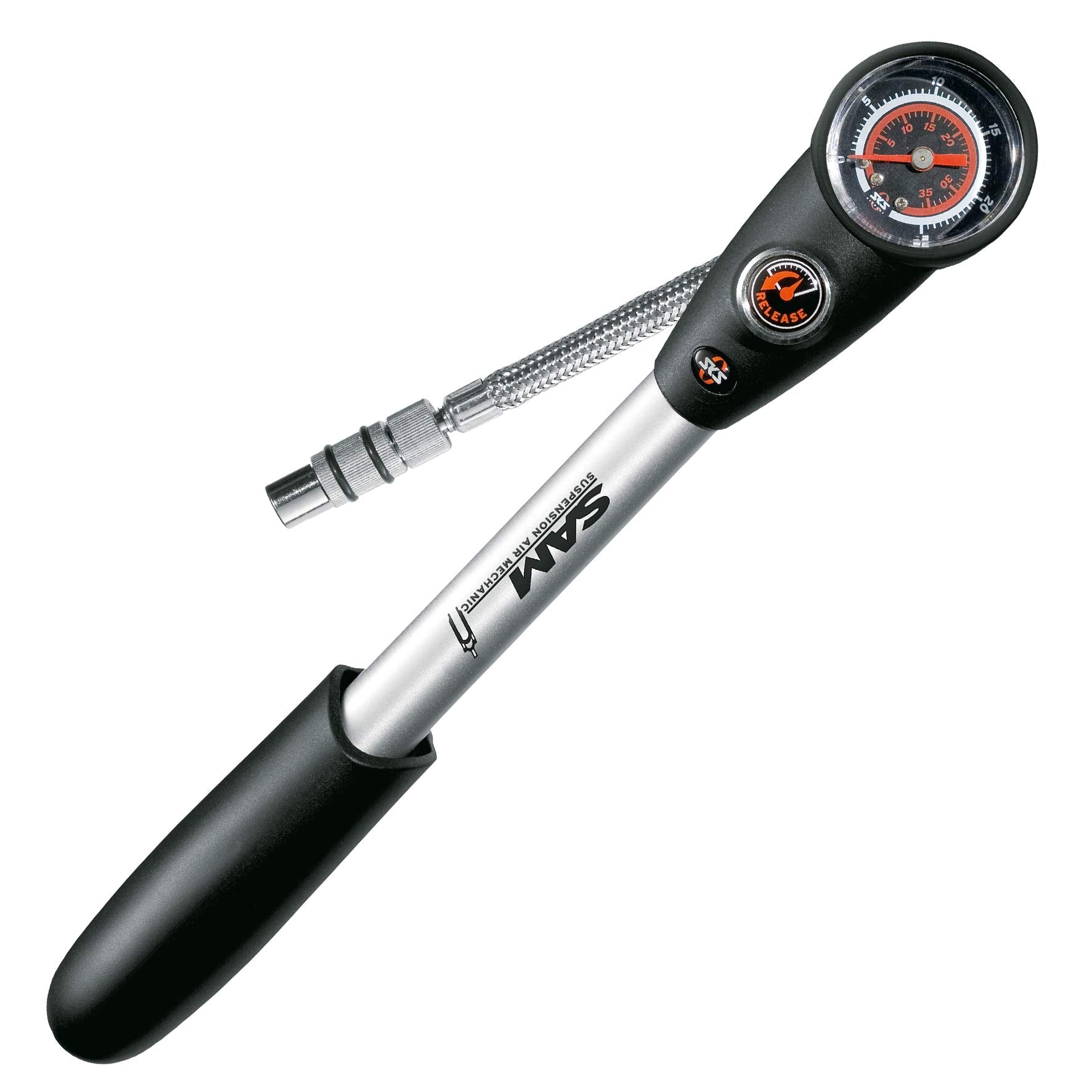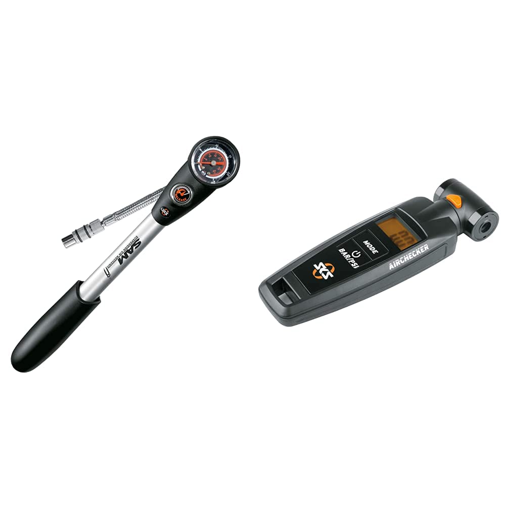 SKS GERMANY Shock Pump SAM Suspension Air Mechanic Bike Pump, Silver & AIRCHECKER (AV/SV) 2nd Generation Pressure Gauge for Bikes (high measuring accuracy), Black