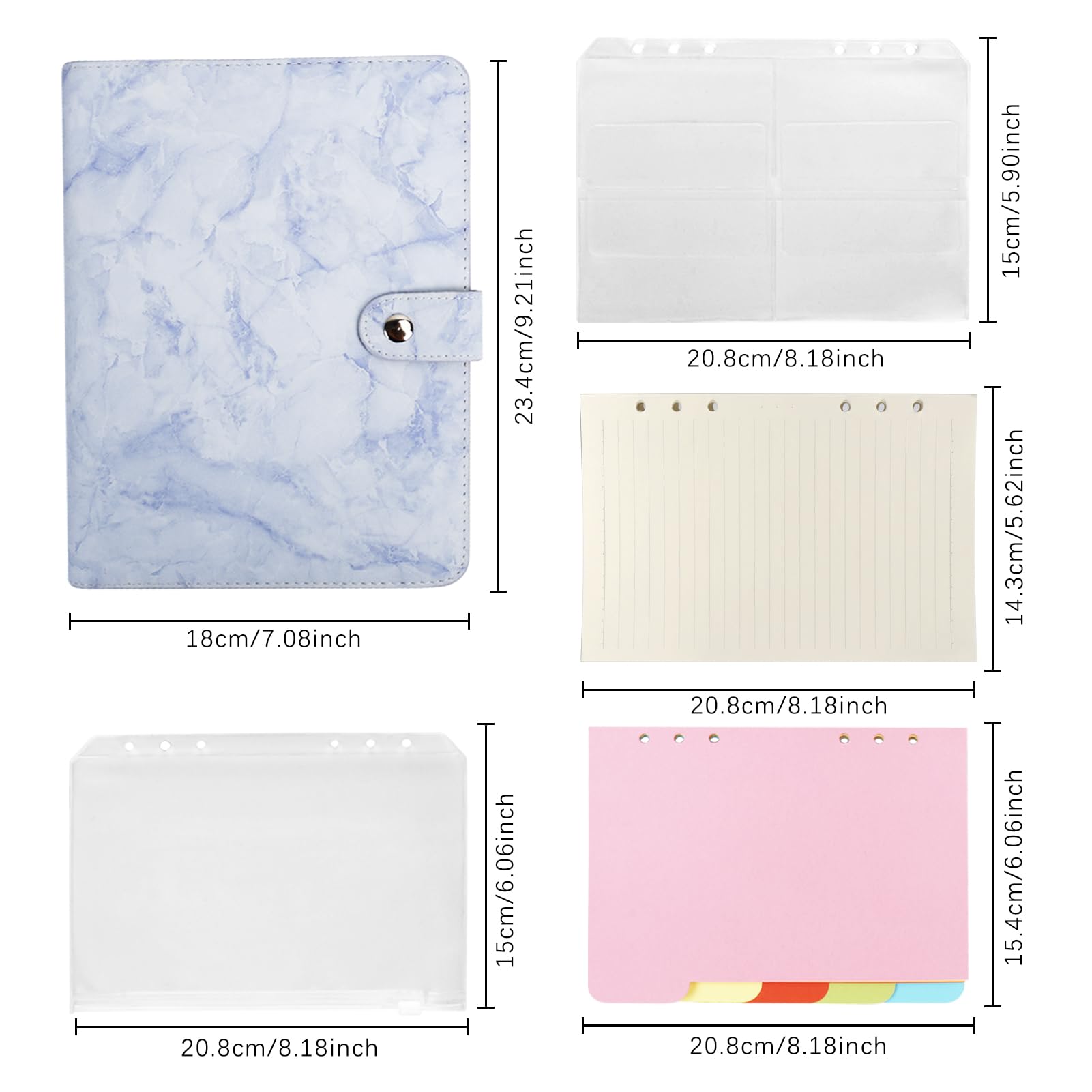 Skycase A5 refillable ring binder, 6-hole loose leaf binder, PU leather notebook folder portfolio with filler paper, binder pockets & paper sheets (Blue)