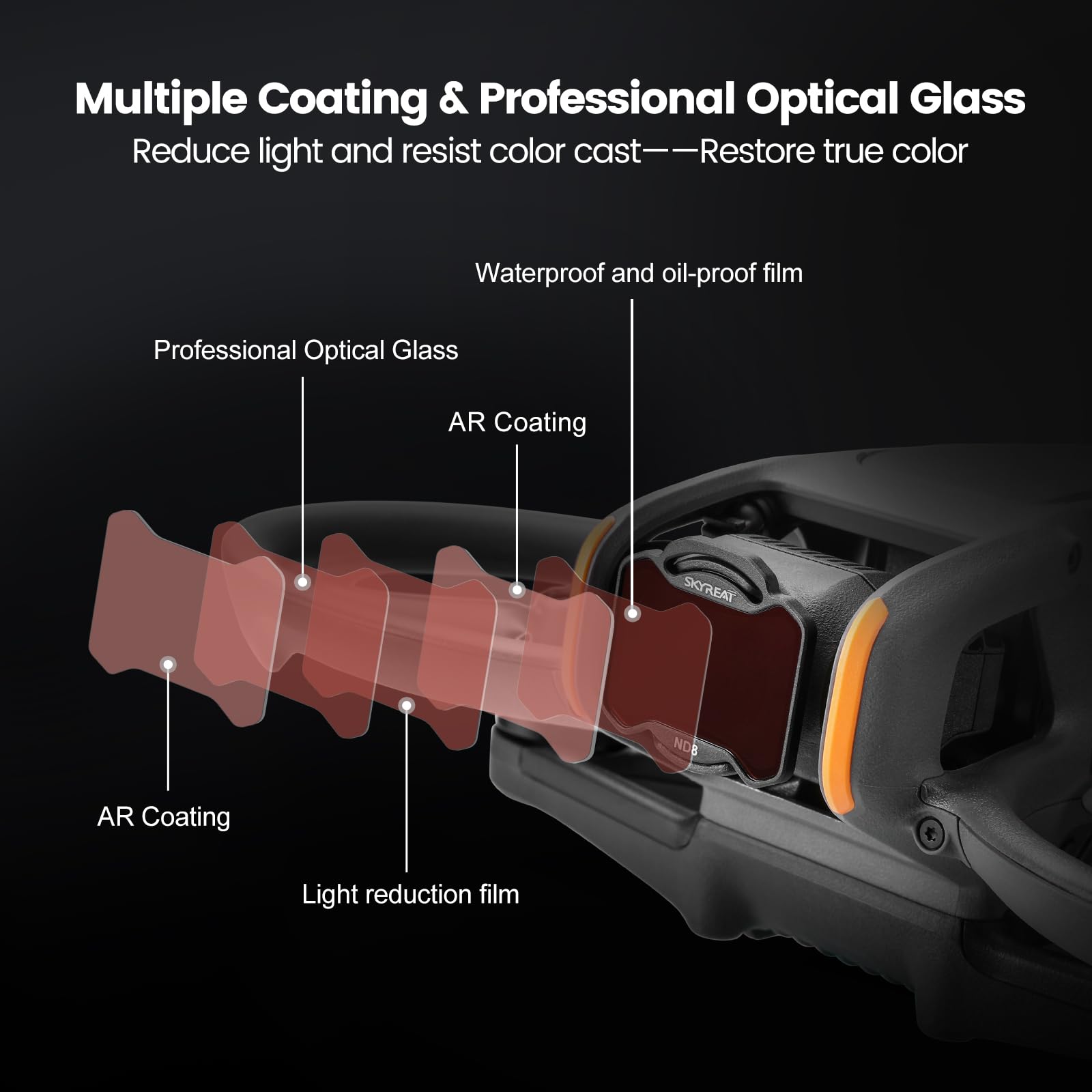Skyreat Avata 2 ND Filter Set includes 5 filters: UV, ND8, ND16, ND32, ND64. Compatible with DJI Avata 2 Drone. Great accessory for your camera lens.
