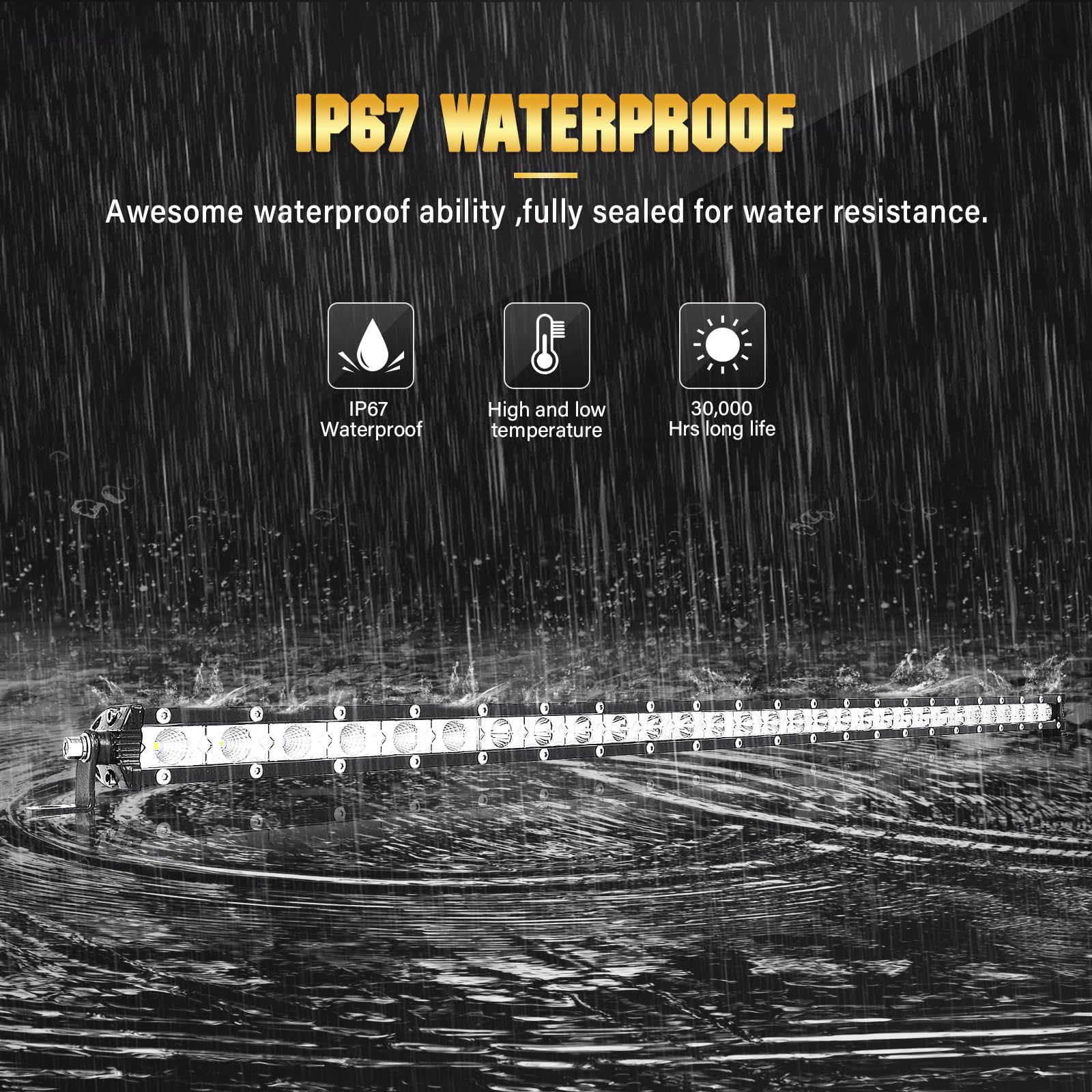 "đăExcellent PerformanceăAnti-shock, anti-rain, anti-fog, IP67 waterproof level, ready-to-use and lamp with high brightness, large projection distance. The IP67 seal, rubber seal, and silica gel seal maintain sealing performance, and the housing protection of an aluminum die-cast alloy provides excellent shock and dust resistance."]