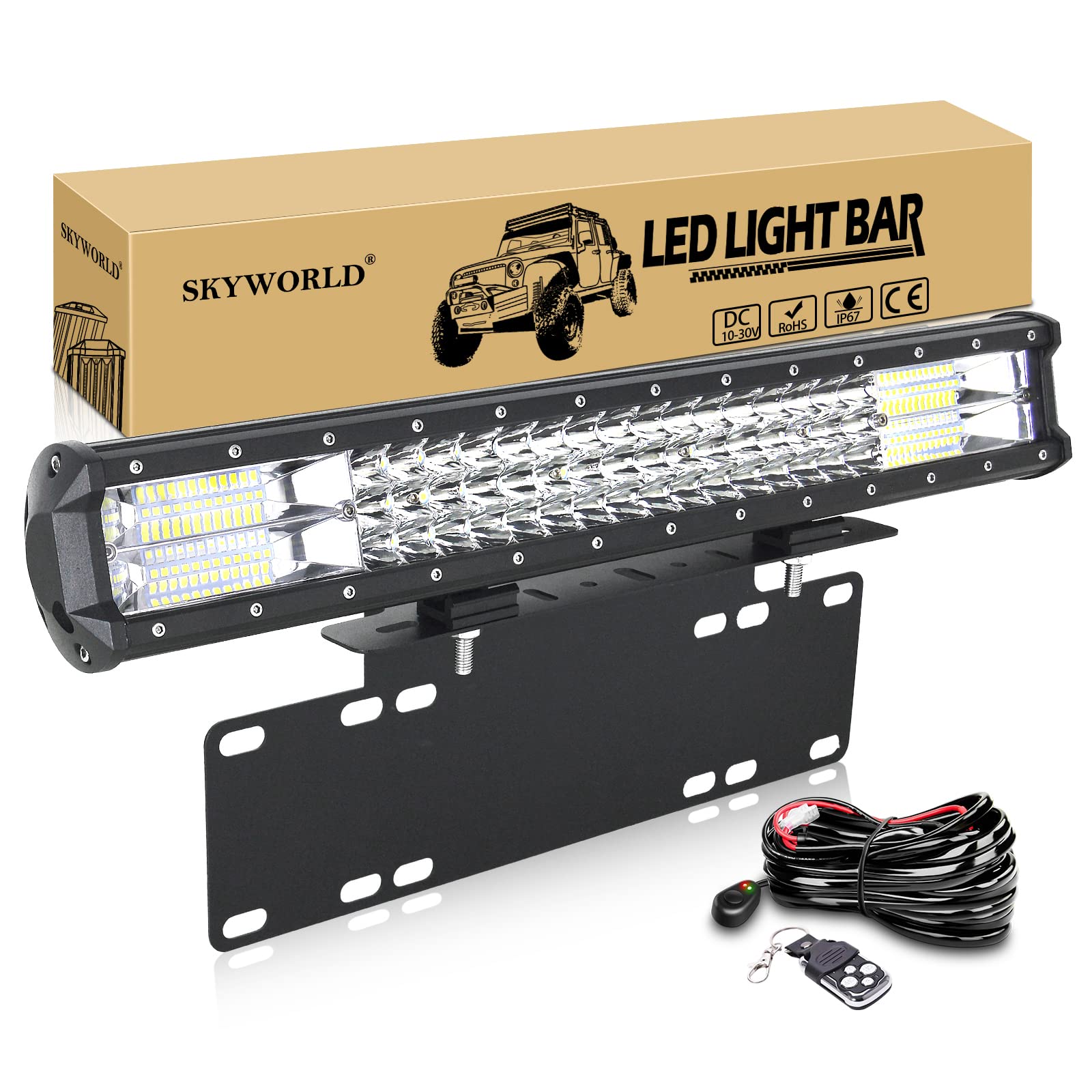 SKYWORLD 50.8cm work light 288W LED light bar, auxiliary headlight off-road spotlight, license plate holder with 12V flash wiring harness kit for car SUV truck car 4x4