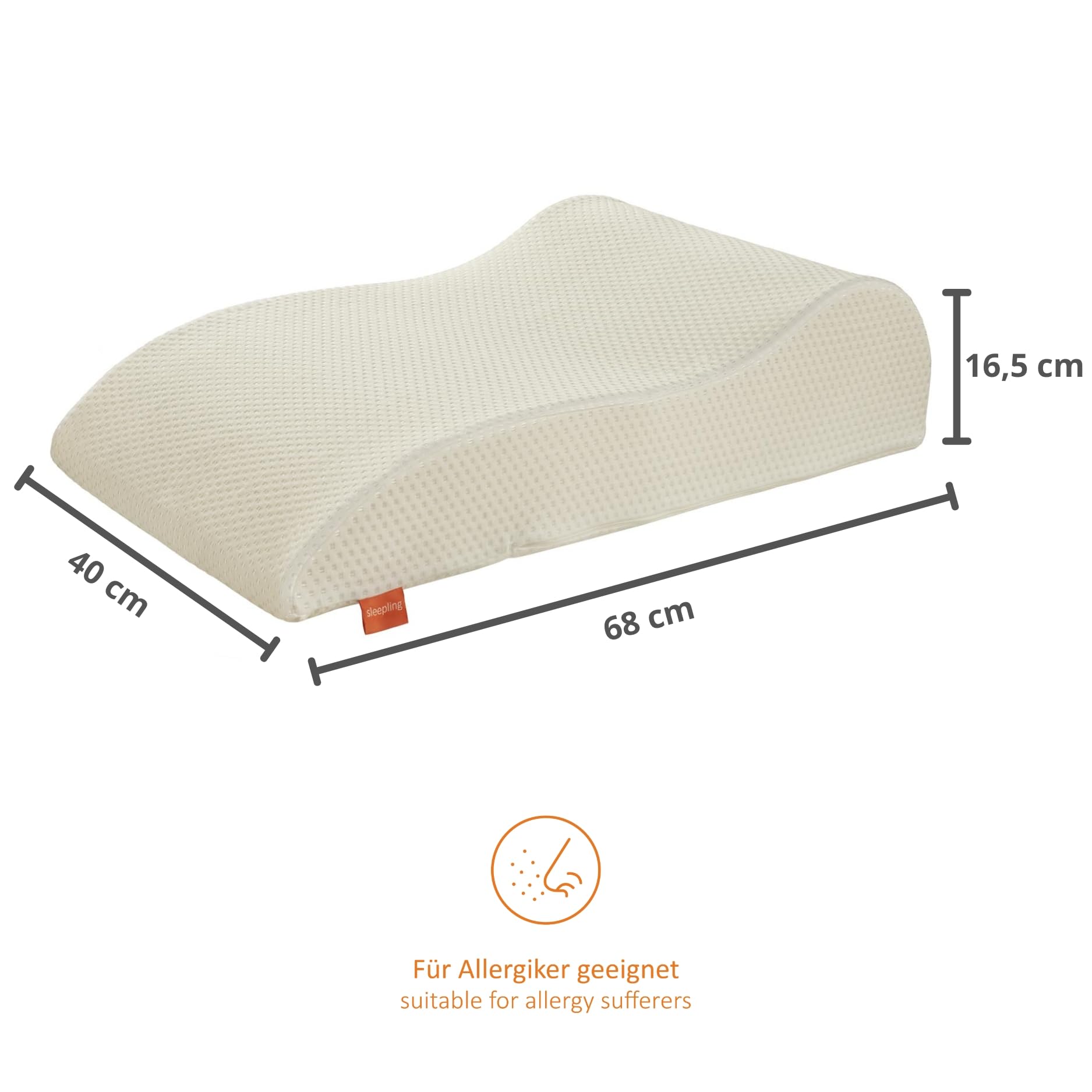 Sleeper leg pillow, leg elevation pillow, leg pillow, positioning pillow for adults, knee pillow 40 x 68 x 16.5 cm, 100% polyester, washable at 60 degrees, Oeko-Tex 100, Made in EU.