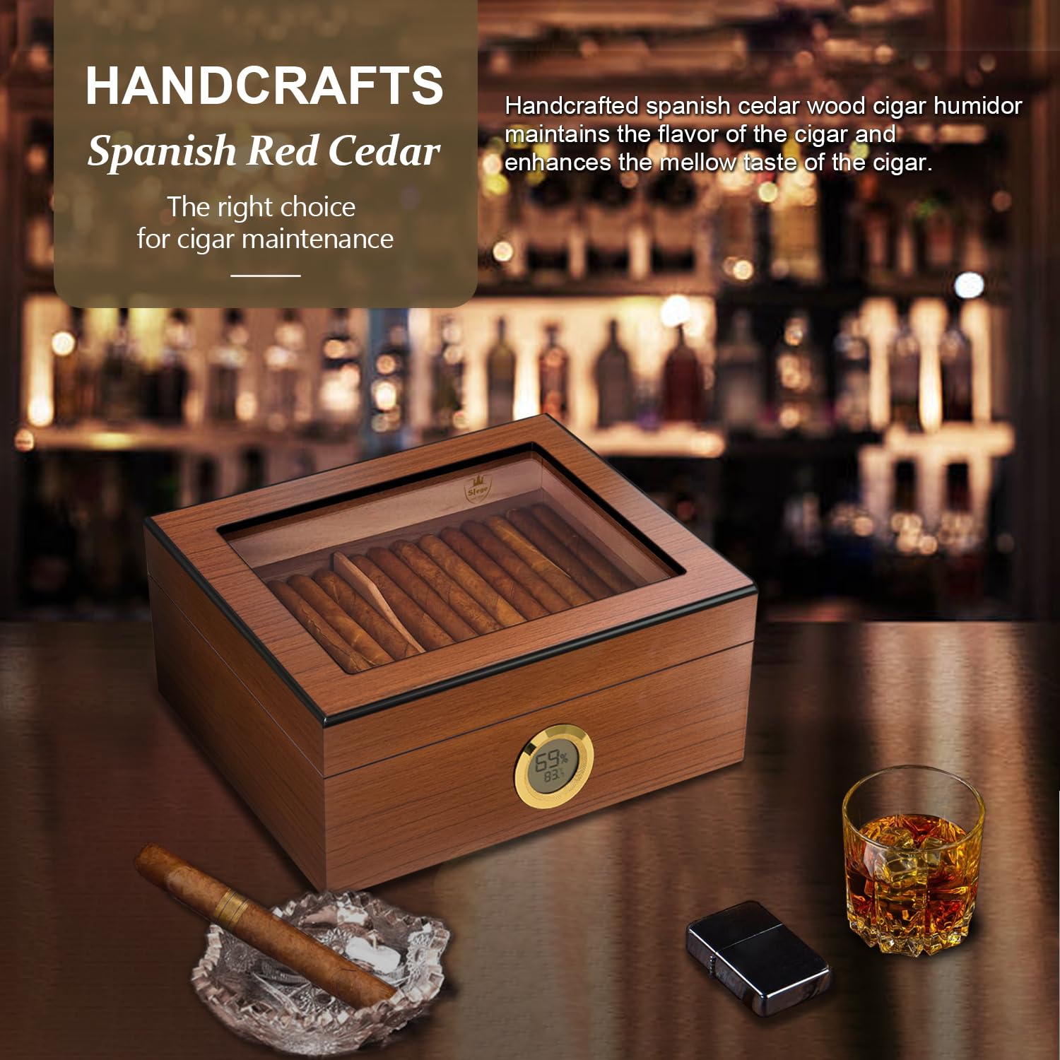 Slege Cigars Humidor, Humidor Cigars Spanish Cedar, with Digital Hygrometer, INOX Cigars Humidifier, Divider, Cuban Cigars Accessories, Gift for Men, German Manual (Brown)