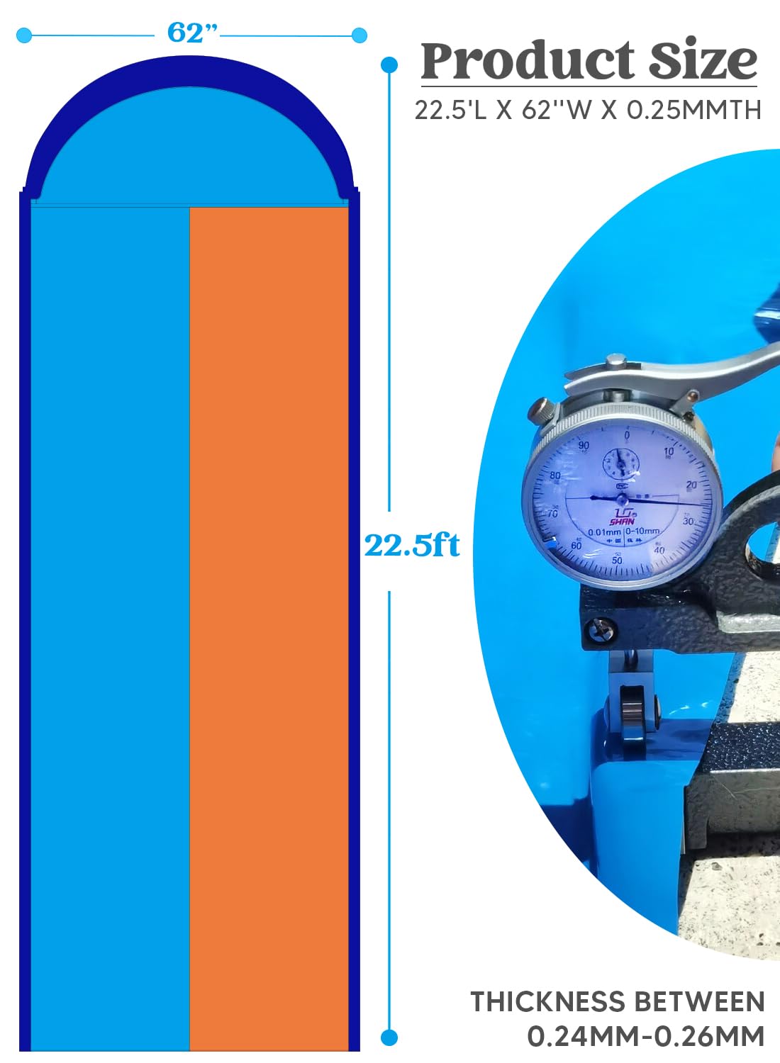 "EXTRA LONG: This 22.5 foot long water slide provides children with a longer and exciting sliding experience and is the perfect gift for any season. An ideal outdoor activity to keep children entertained in the summer.",