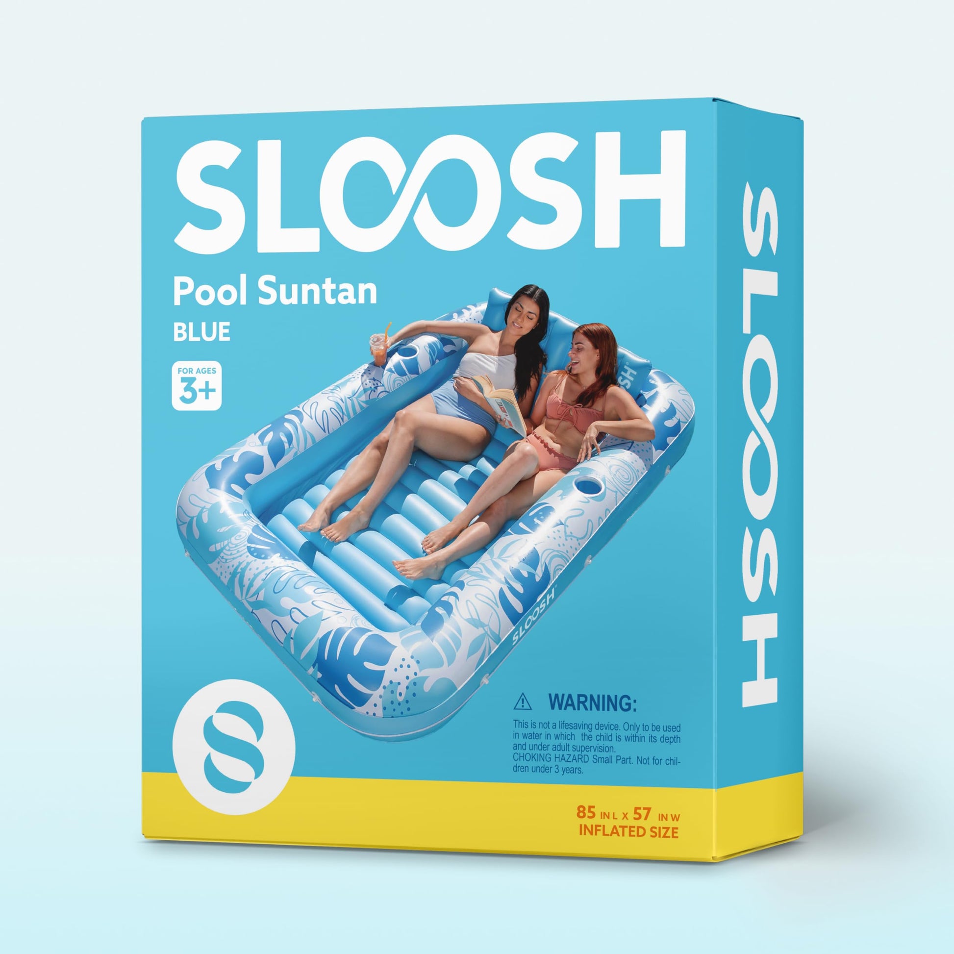 ["Included is an extra-large inflatable sun lounger pool (85\" x 57\"/2.1*1.4m) with an inflatable base for extra comfort, two 3-inch drink holders, a detachable headrest, and a surrounding rope.","EXTRA LARGE. 85”/2.1m long and 57”/1.4m wide, extra-large, can fit up to 2 people. Enjoy your summer tan alone or share the sunbathing experience with friends or family members.","PREMIUM QUALITY. This sun lounger is made of thick, durable, and UV-resistant PVC with a thickness of up to 0.3mm.","BUILT FOR COMFORT. Our sun lounger pool comes with a detachable pillow and a ribbed air cushion base. The pillow provides extra support to your neck and back, and the ribbed air cushion base offers a particularly comfortable sun lounger experience.","ADDITIONAL STABILITY. Our pool lounger has great built-in eyelets with a surrounding rope for better maneuverability. Attach it to other loungers or the deck and enjoy this tropical-designed summer lounger."]