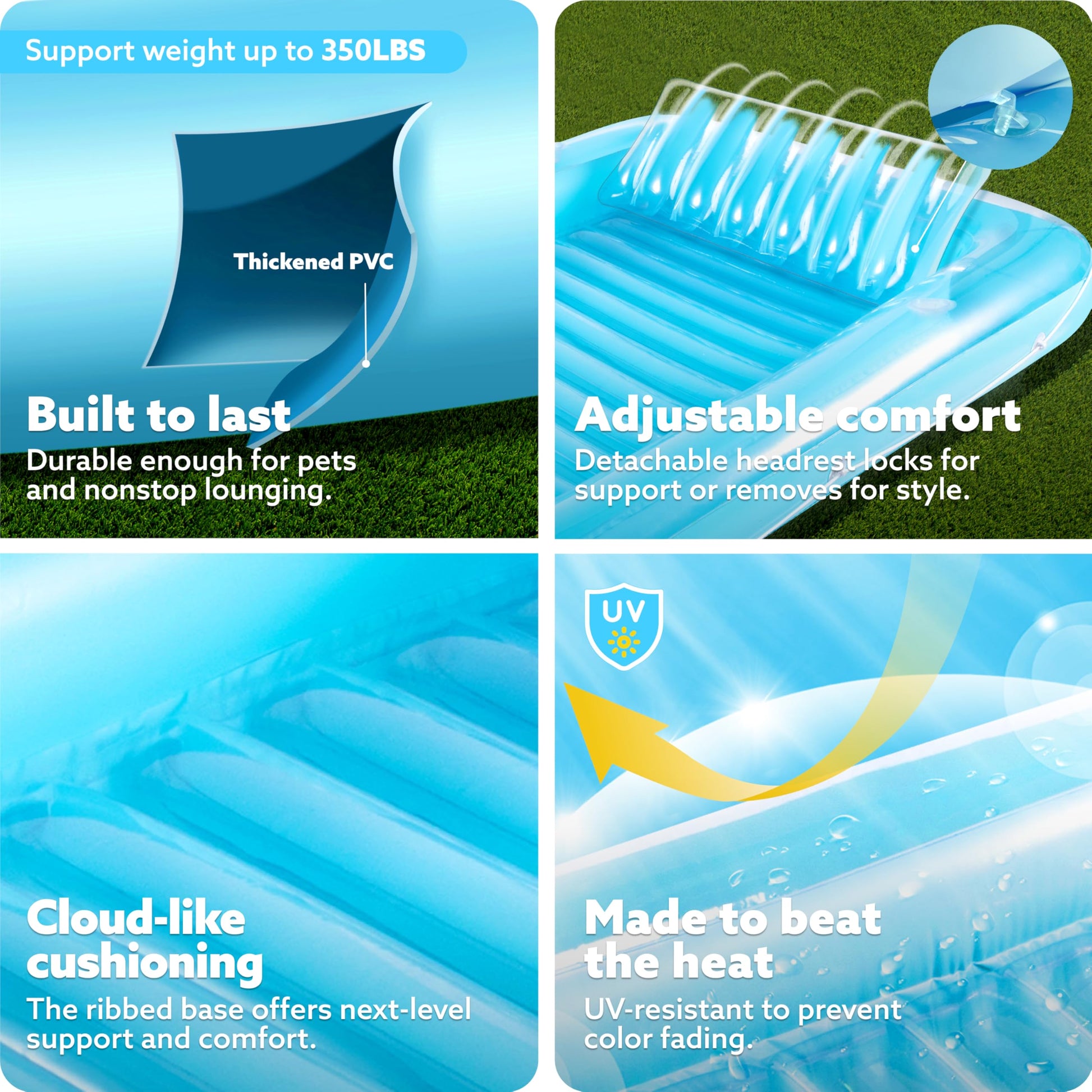 Sloosh 85" x 57" / 2.1 x 1.4m Inflatable Sun Pool Tanning Pool, Air Mattress Pool, Sunbathing with Removable Pillow, Water Pool for Adults, Summer Fun, Water Party - Blue