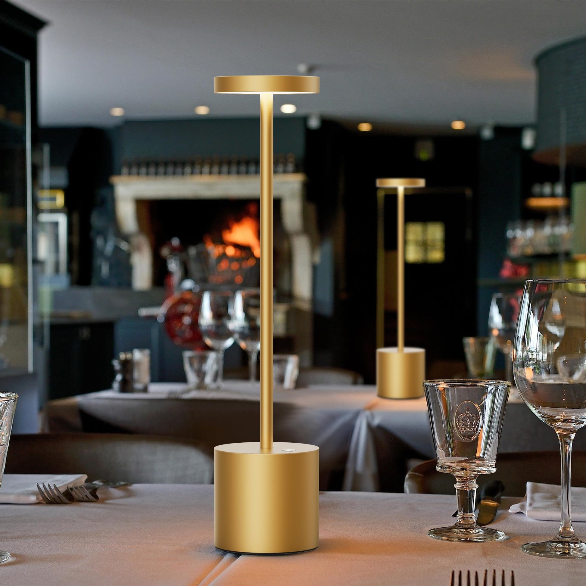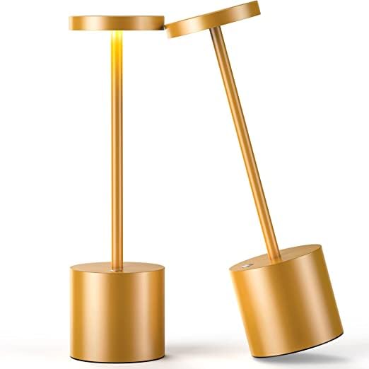 SLSMD Cordless Table Lamp, 5000mAh Metal Aluminum Dimmable LED Battery Table Light, Portable USB Rechargeable Bedside Lamp, Suitable for Indoor Outdoor Dining Room Bar Patio (2 Gold)