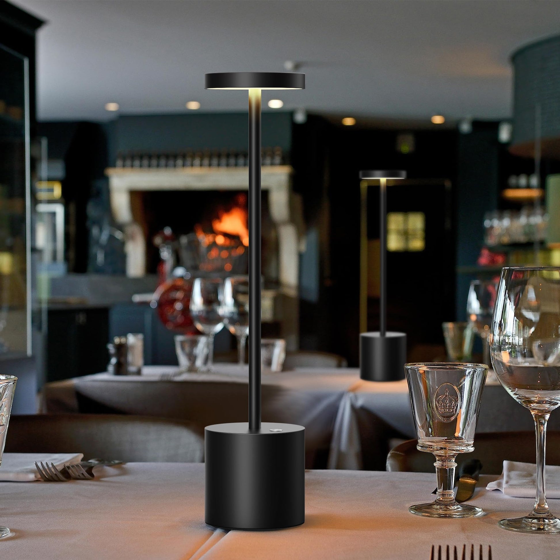 SLSMD Cordless Table Lamp, 5000mAh Metal Aluminum Dimmable LED Battery Table Light, Portable USB Rechargeable Nightstand Lamp, Suitable for Indoor Outdoor Dining Room Bar Patio (2 Black)