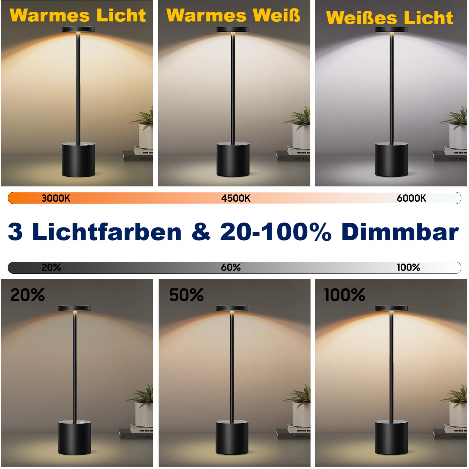 "LED Dimmable Battery Lamp - Table lamp with stepless dimming and sensitive touch control. Hold down the button to adjust the brightness, first long press: bright-dim, second long press: dim-bright. Low light - comfortable for resting. Medium light - suitable for normal use or decoration. High light - bright enough for reading or as a study lamp.",