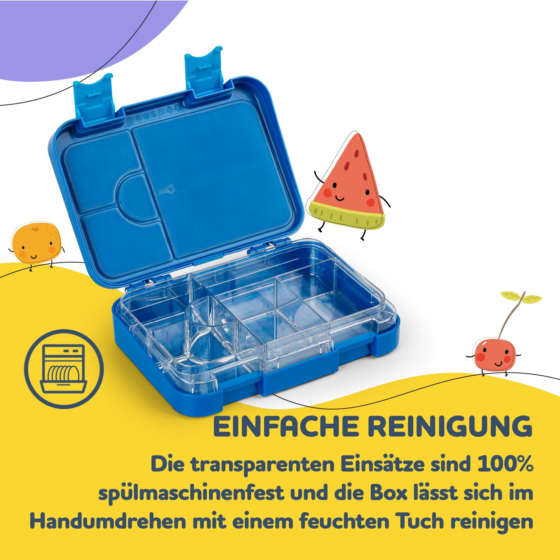 "CLEARING HAS NEVER BEEN SO EASY: Our compartment lunch box for kids is specially designed for busy parents. Just put the easy-care kids lunch box in the dishwasher and the snack box is ready for the next meal.