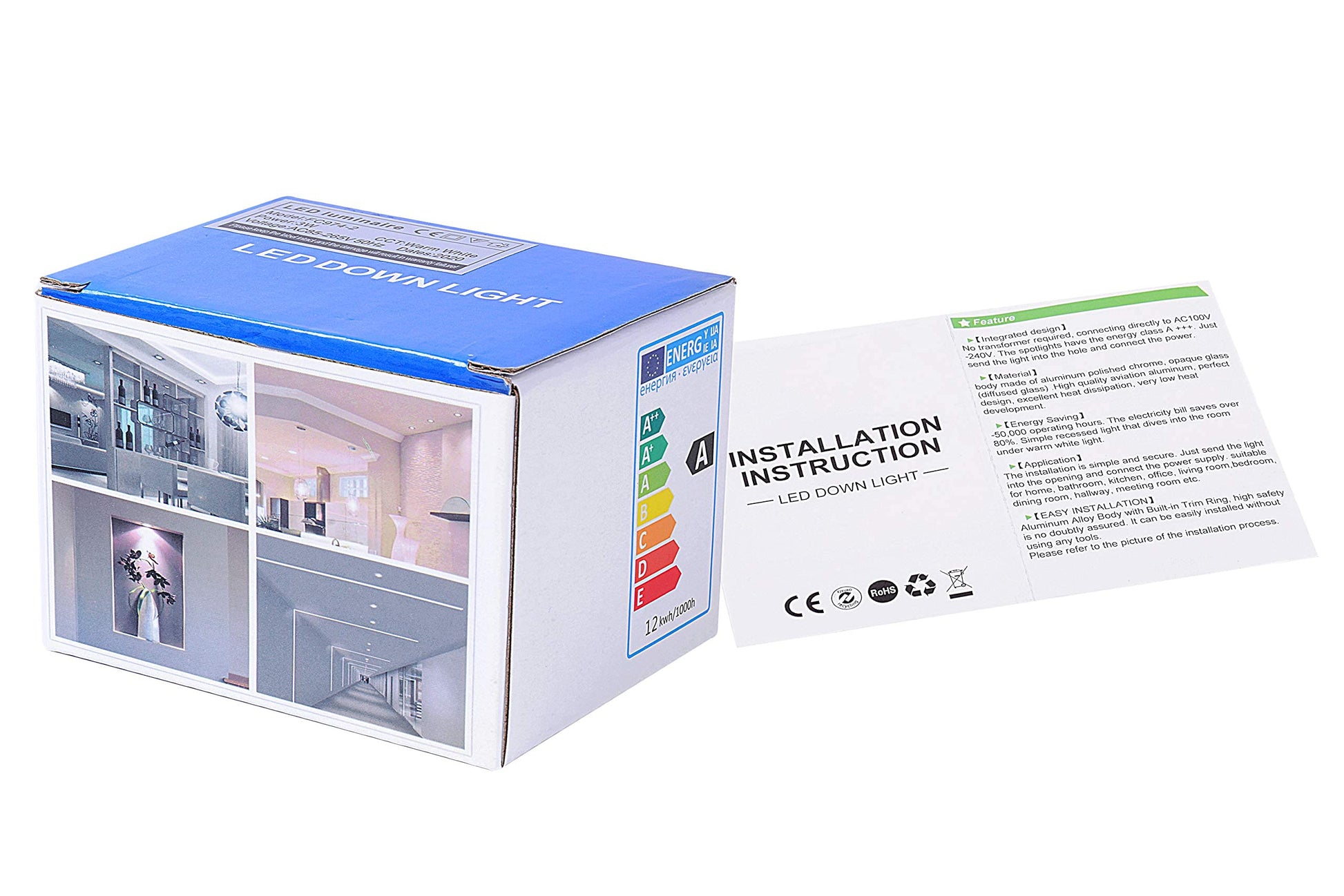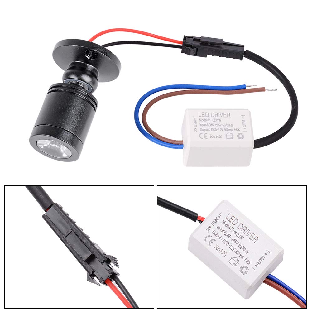 ["High-quality Material: Aluminum housing, quality lens, light transmittance, uniform light color; LED light chip, more energy saving, environmental protection, no flicker, and no ultraviolet radiation","Basic parameters: Power: 3W per piece; Color temperature: Warm white 3000K, Cool white 6000K; Input voltage: 85-265V AC; Lifespan over: 50000 hours; Energy efficiency class: A+","Easy Installation: Size: 50x35x25mm. With transformer, prevents LED and electronic components from being affected by voltage, and guarantees lifespan. The light angle can be rotated by 360°.","Applicable Scenes: This LED downlight can achieve excellent lighting and decorative effects. You can install it in showcase, shelves, cabinets jewelry, living room, bedroom, hallway, stairs, salon, hotel, cafe, galleries, shops, etc.","Certification & Customer Service: CE & RoHS certification. We take the satisfaction of every customer very seriously. If you have any questions, feel free to contact us. We will do our best to solve your problem."]