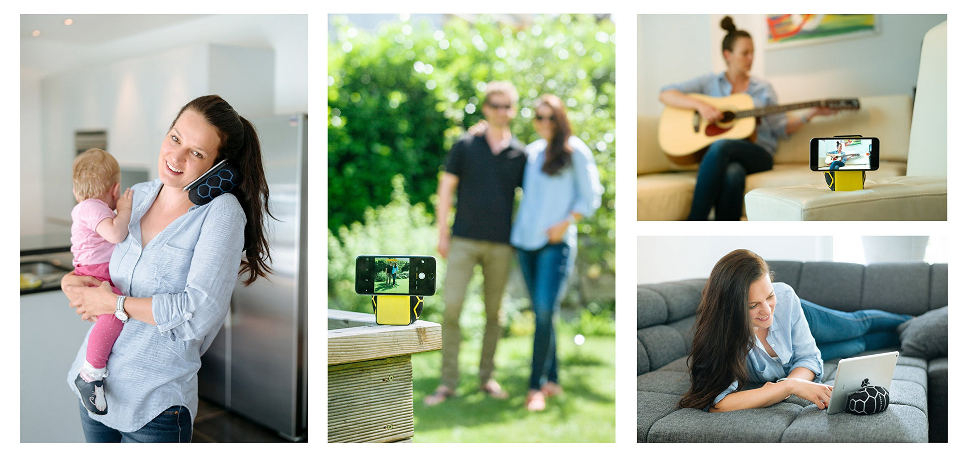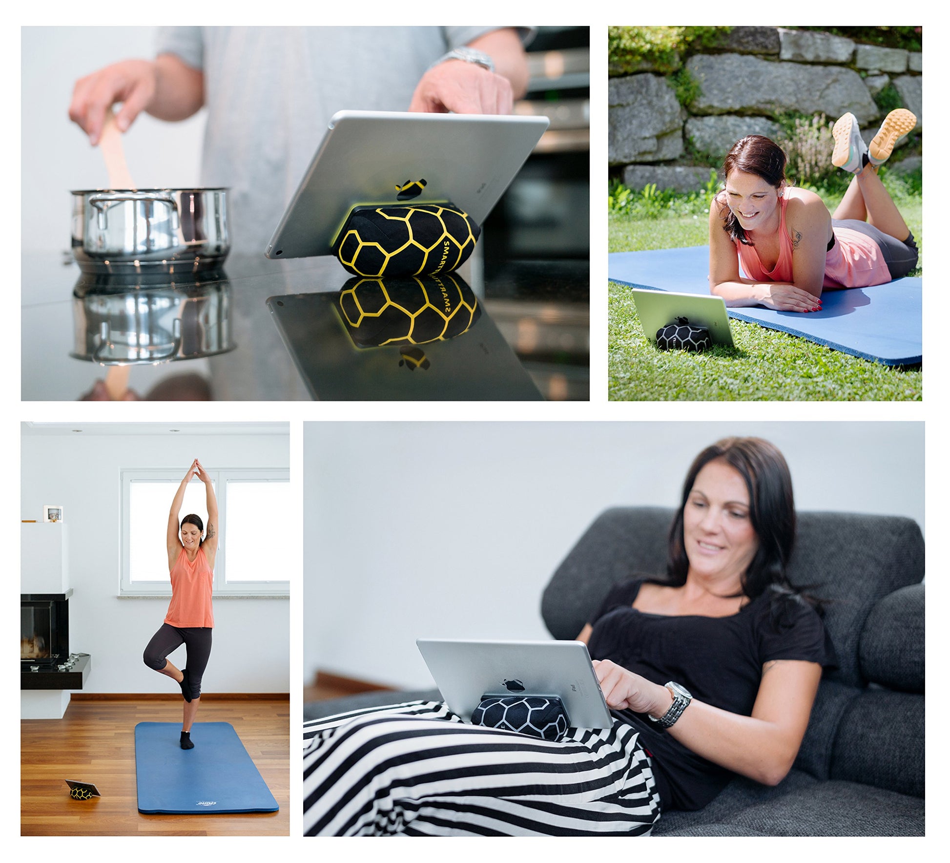 "As an iPad pillow, Tablet pillow, always have the fitness app at the right angle during sports, as a tripod for selfies, for video recordings and vlogging. Simply anywhere you want your hands free, but still have the perfect view of the display."]