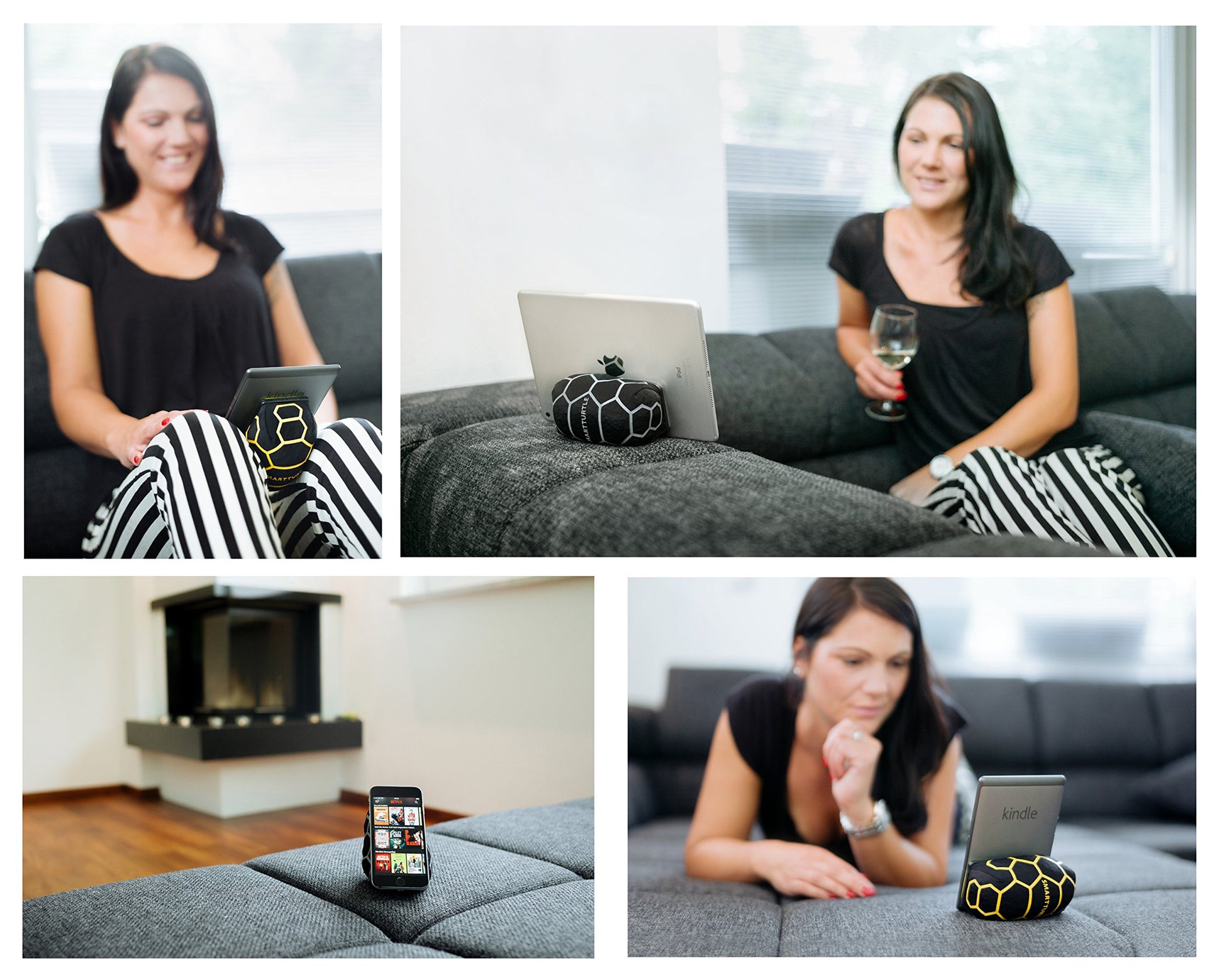 SmartTurtle® Mobile/Tablet Pillow Made in Austria, Silver iPhone iPad Holder, for bed, sofa, table, compatible with Apple iPad, Samsung Galaxy, and all smartphones