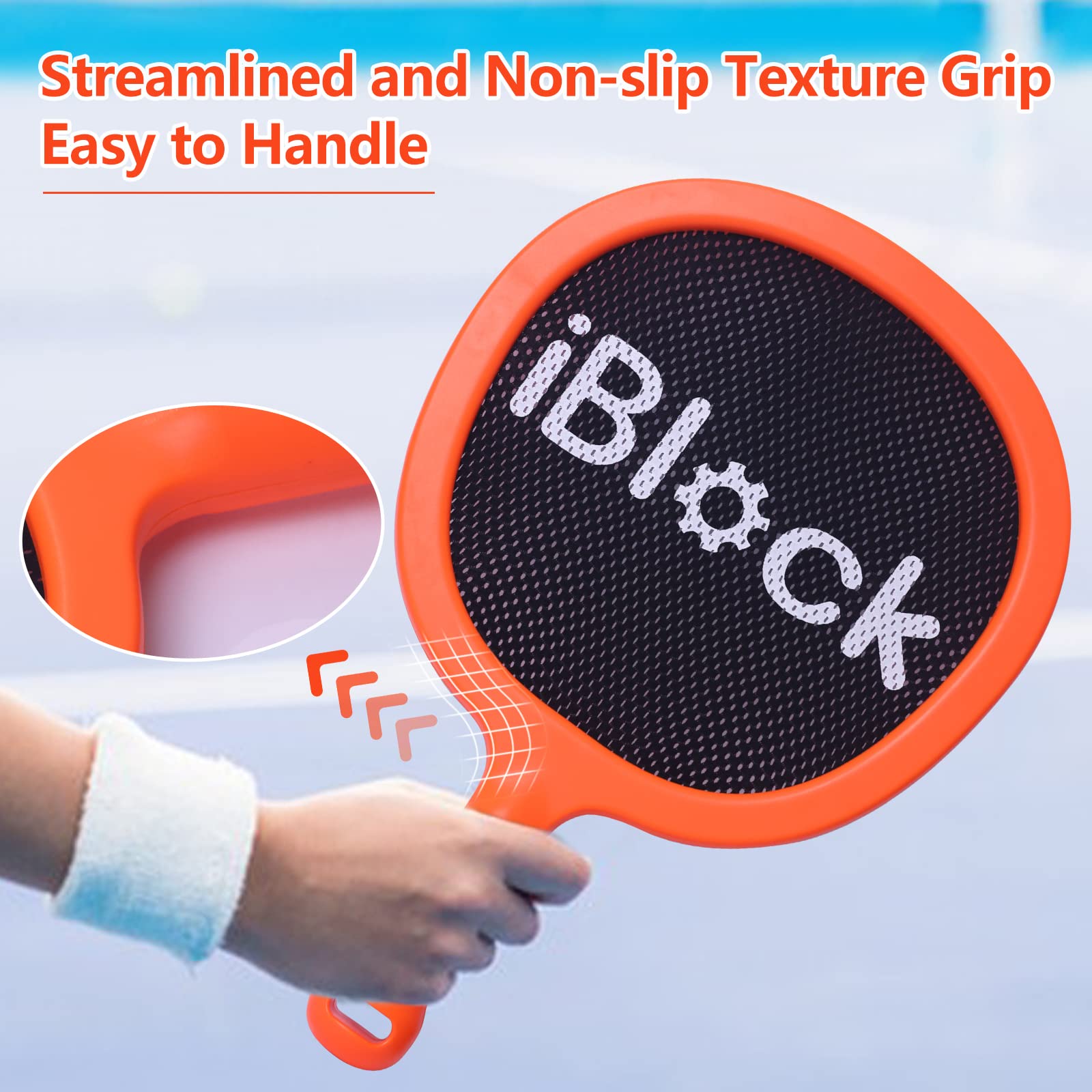 Kid-friendly design: racket frame made of lightweight and durable plastic. The shortened and non-slip racket handle is better suited for small children's hands. The wider racket face and elastic net make it easier to serve and catch the ball.