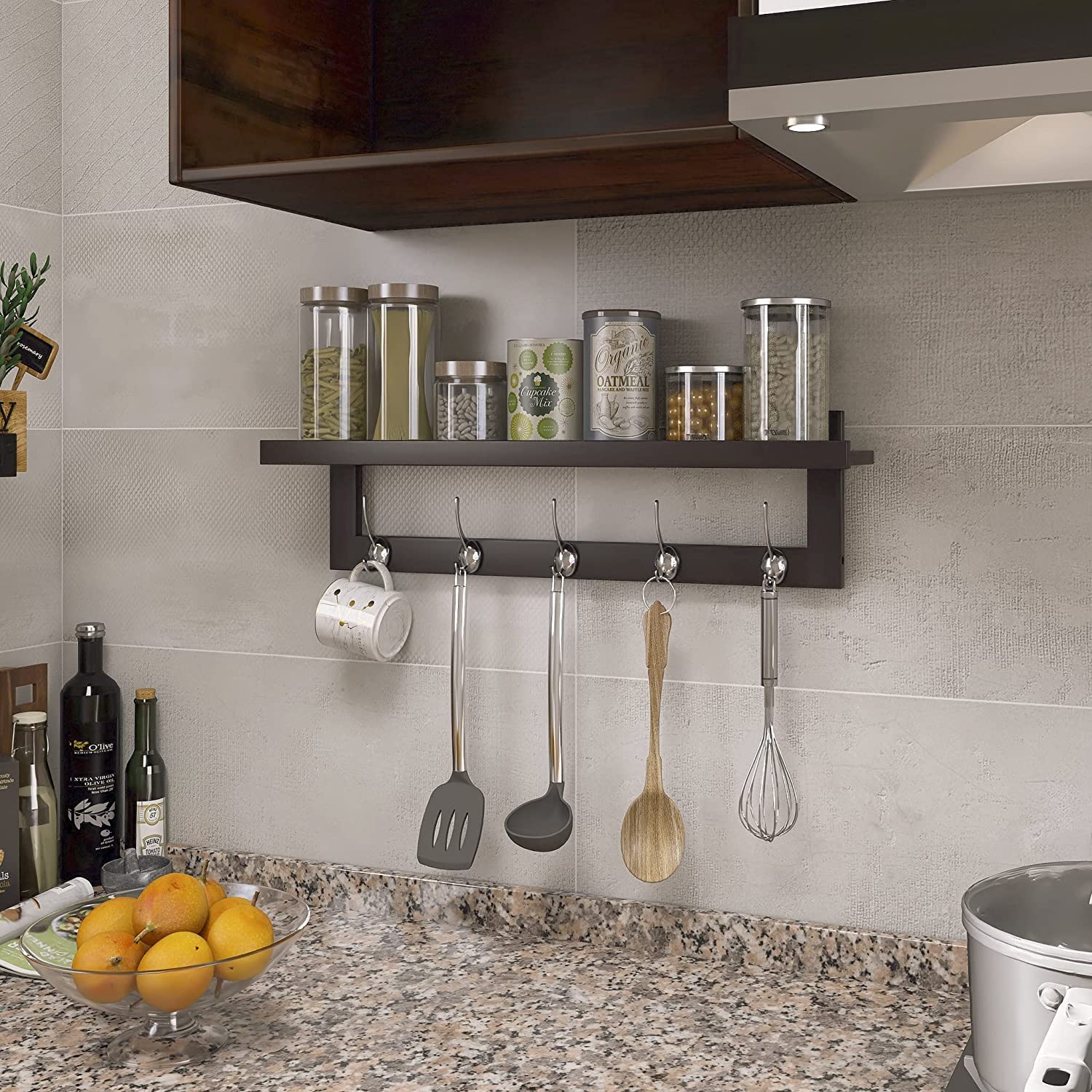 ["★ LARGE DISPLAY SHELF WITH 5 DOUBLE HOOKS: Top 29.1 x 4.7 inches, larger than most common coat racks, provides more space for decorating gadgets or storing items; comes with 5 double hooks for hanging items over 4.1 with 5.1 inches center-to-center distance between hooks for maximum usability","★ ORGANIZE AND DECORATE TOGETHER: This beautiful coat rack is thoughtfully designed with a partition to securely hold keys, wallet, plant, candle, and can be used as a display stand for picture frames, envelopes, and decorative letters. 5 double metal hooks for hanging hat, coat, jacket, or bag, keeping all essentials neatly in one place and within reach","★ VERSATILE & PRACTICAL: In addition to serving as a coat rack in the entryway, hallway, and bedroom, this beautiful floating organization stand can also be used to store bathrobe, towel, and toiletries in the bathroom; dish towel, coffee mug, cup, or kitchen utensils for drying in the kitchen; display plants, flowers, and organize garden tools in the garden, etc.","★ ELEGANT, PREMIUM QUALITY & DURABLE: Made of 100% polished, solid bamboo wood with a protective coating of environmentally friendly lacquer, very smooth surface, the hollow design, and 5 durable, streamlined hooks that blend perfectly with your home decor","★ EASY TO ASSEMBLE & STURDY: Illustrations and all necessary hardware are included, simply follow the instructions to set it up; All solid bamboo parts are secured with galvanized screws, and with these sturdy metal hooks, this shelf can support up to 33 lbs"]
