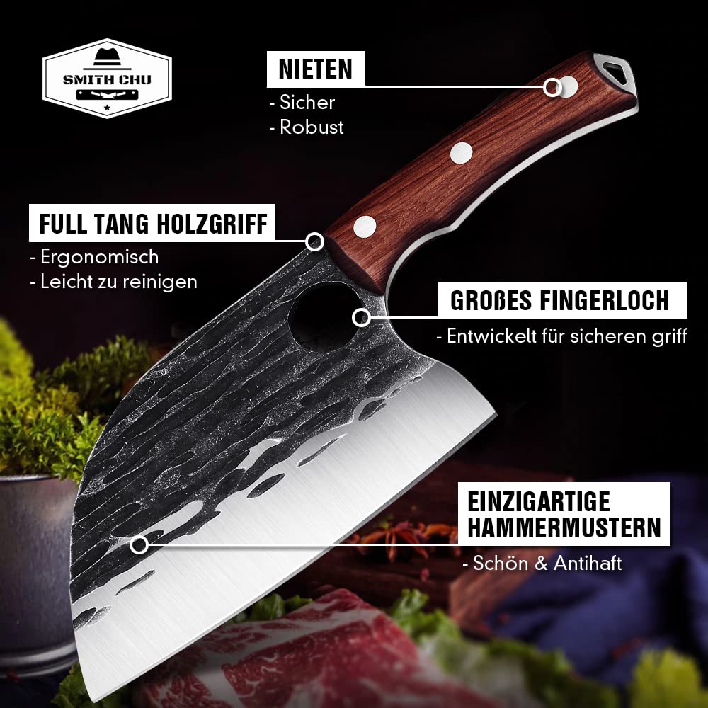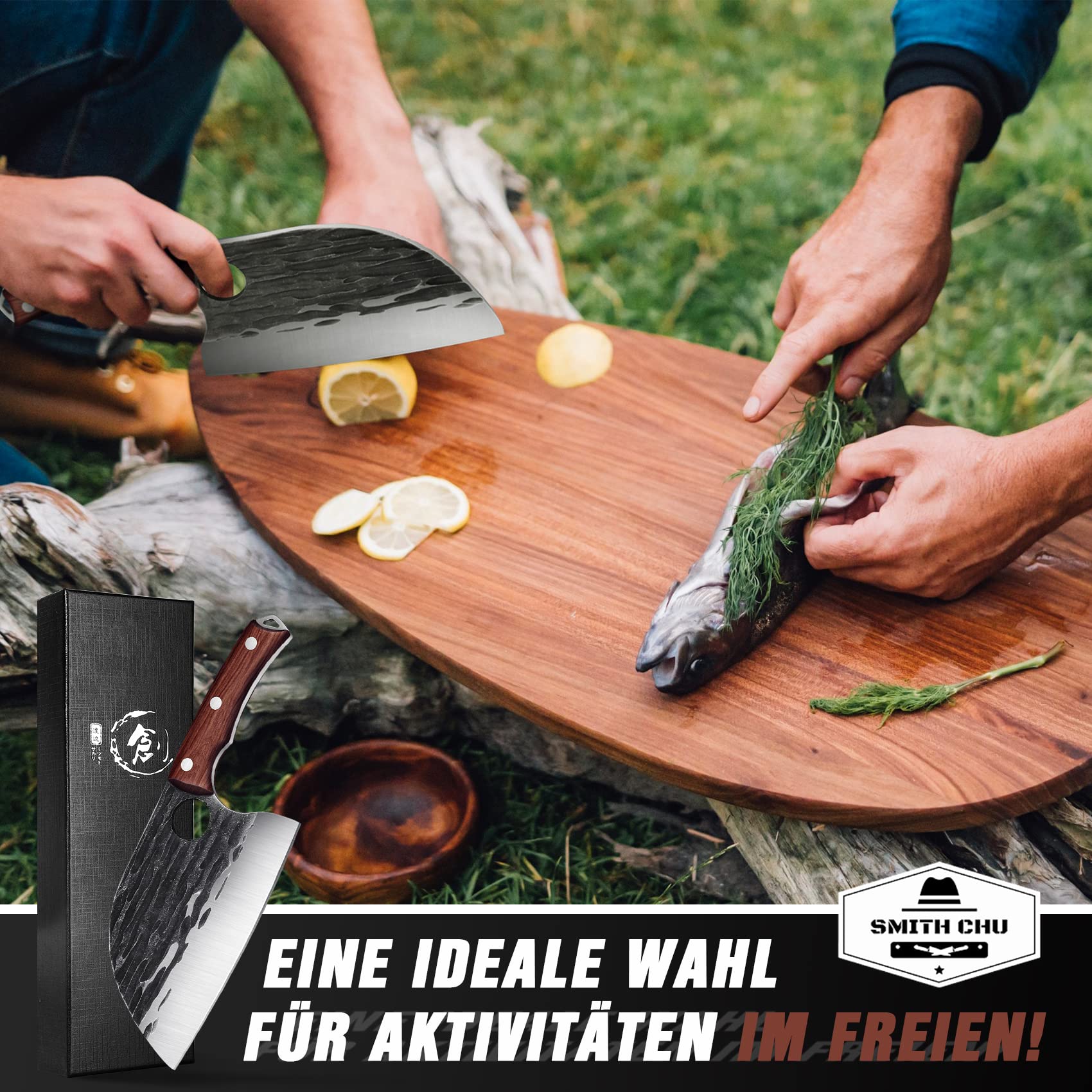 SMITH CHU cleaver Serbian butcher knife hand-forged chef knife kitchen knife meat cleaver sharp boning knife with leather sheath full tang outdoor for BBQ camping