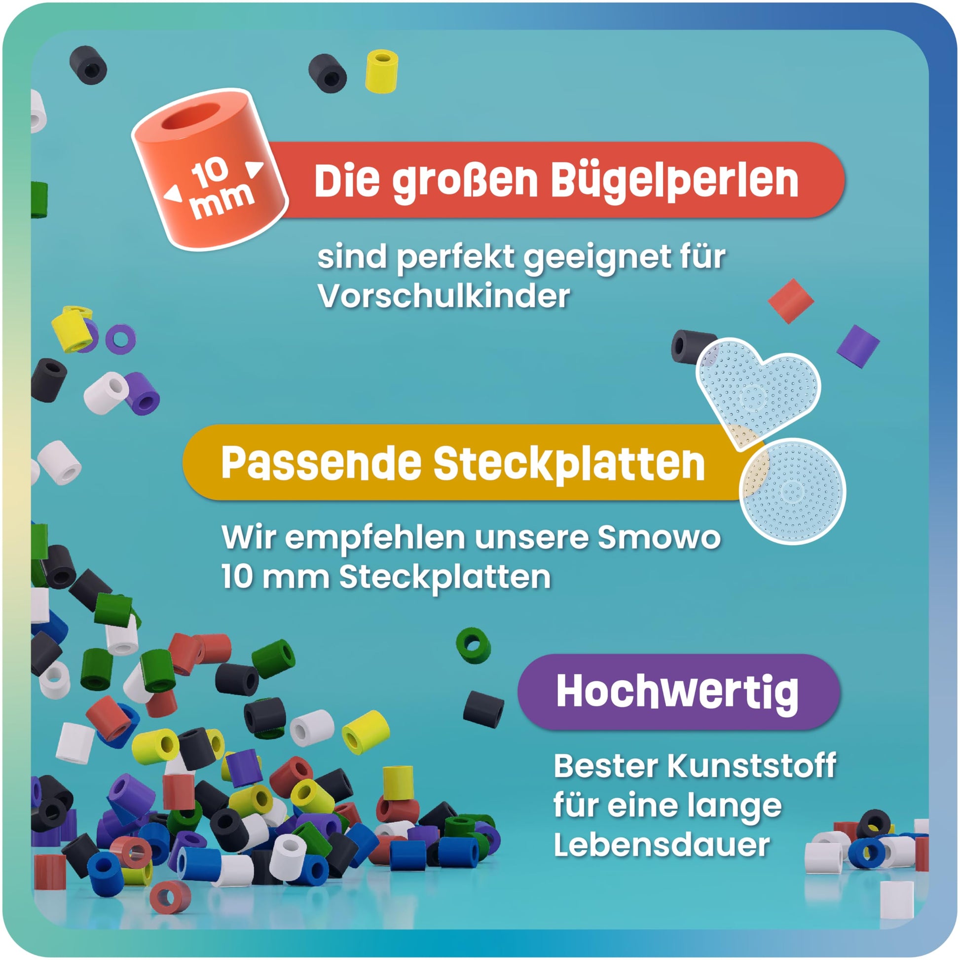 Smowoยฎ Large 10mm Ironing Beads 2000 Pieces for Children 3 Years and Up - 7 Vibrant Colors XL Peg Beads - Creative Bead Set
